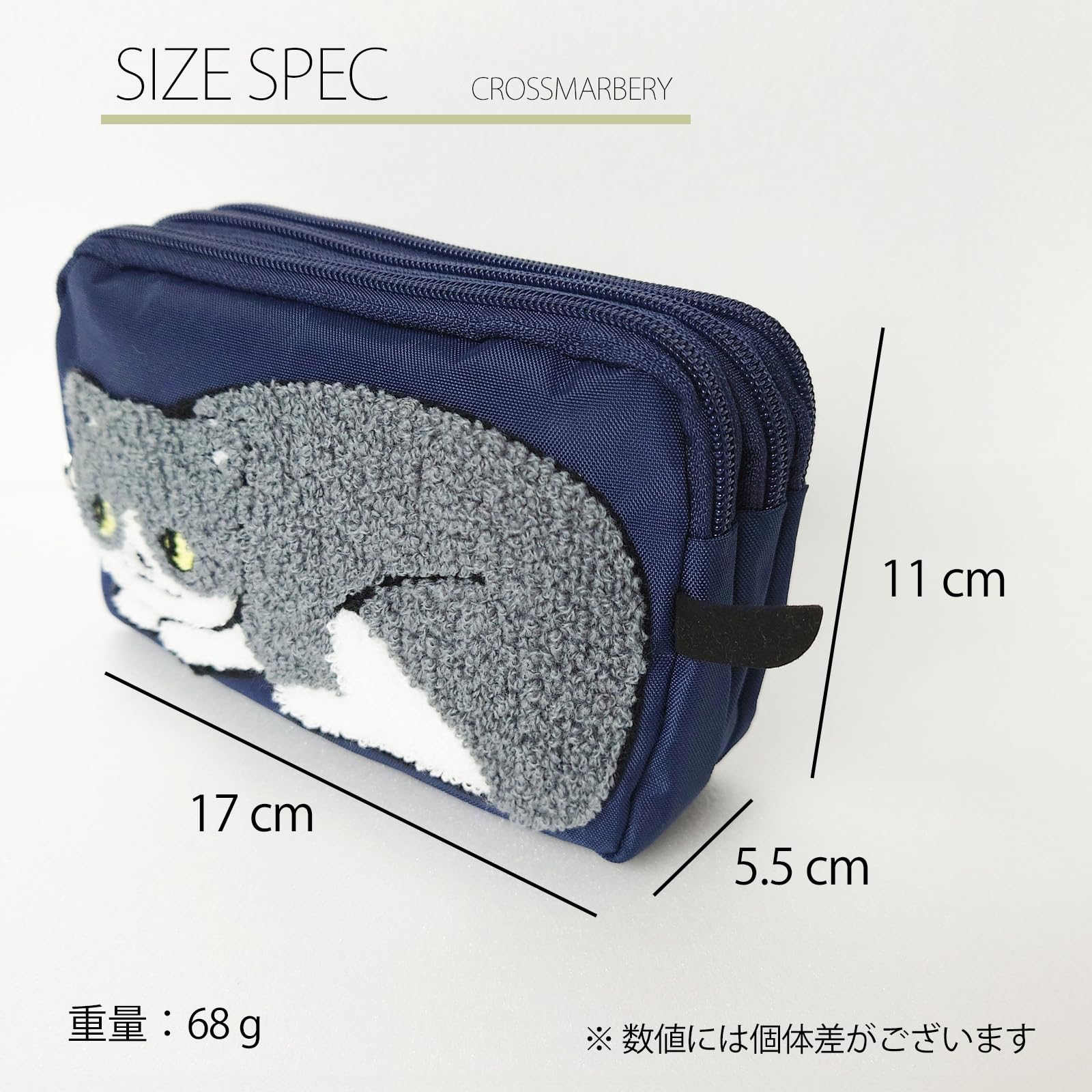 ふわふわ生地の可愛いネコに癒される3つのポケットがついた可愛くて機能的なポーチ。ファスナーの持ち手もかわいい猫のデザイン ファスナーポケットが3つ付いているので、小物を分けて収納するのに便利です。