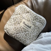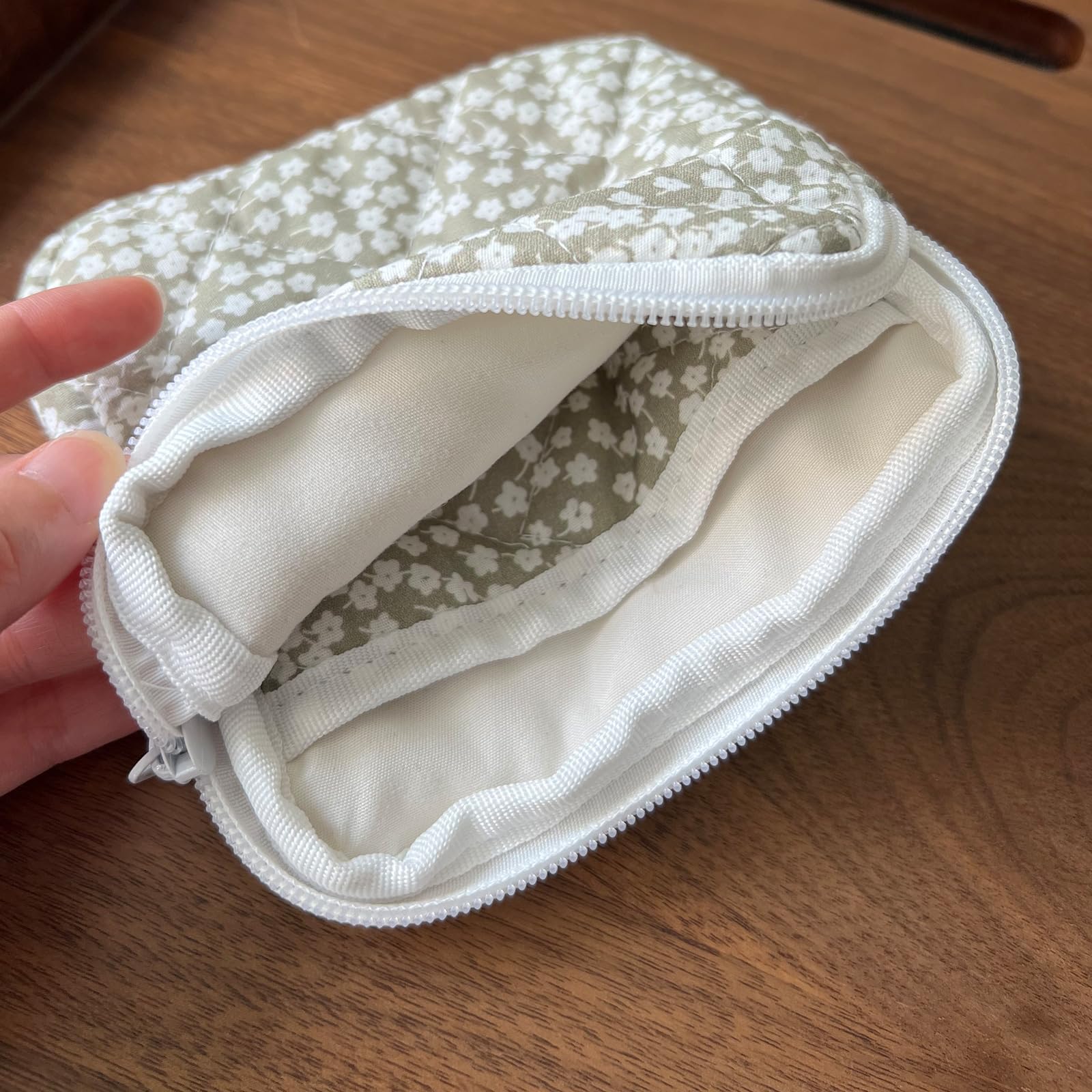 軽量でコンパクトなミニ収納ポーチで、開口部が大きく開くジッパーが付いており、収納に便利です。柔らかいコットン生地は自在に折りたたむことができ、折り目が付きにくくなっています。キルティングデザインがよりおしゃれな印象を与えてくれます。