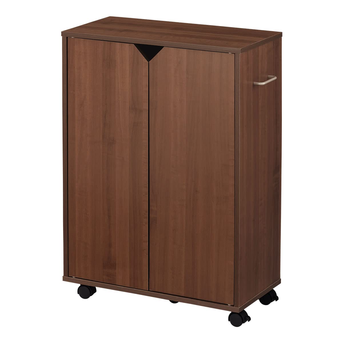 ぼん家具 【完成品】 本棚 扉付き ラック キャスター付 3段 約 幅61 取っ手付き 棚板高さ調節可能 ウォールナット〔取手右〕