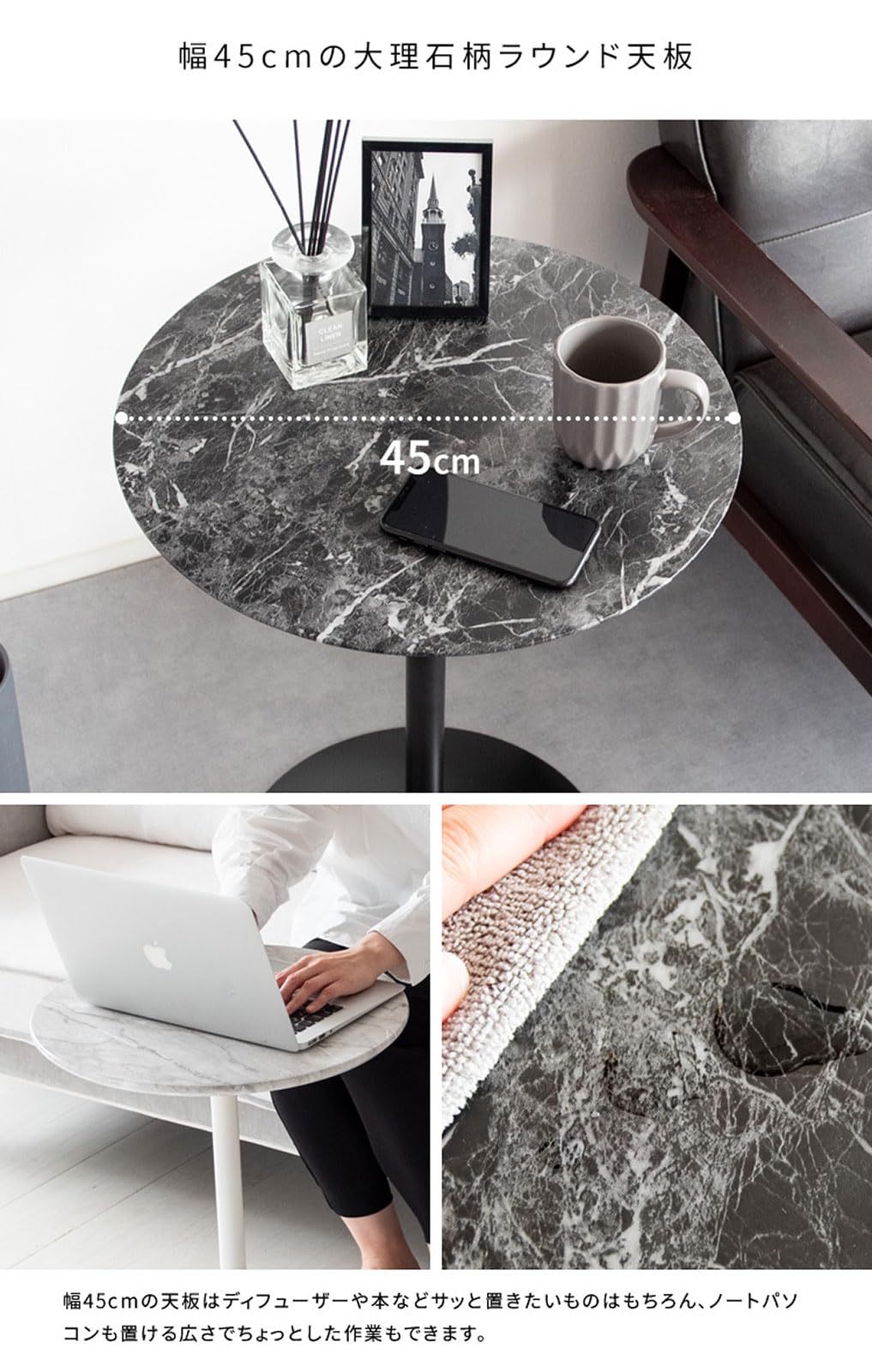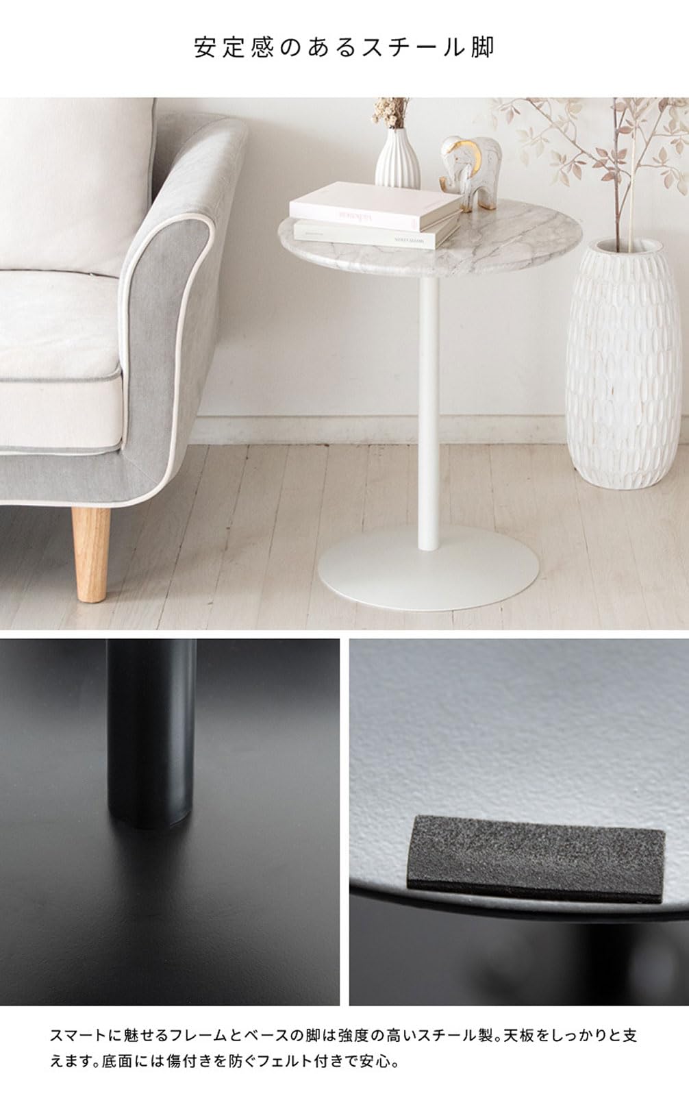 宮武製作所 サイドテーブル 大理石柄サイドテーブル Santos(サントス) 直径45cmとちょうど良い大きさのラウンド天板 ST-019D WH