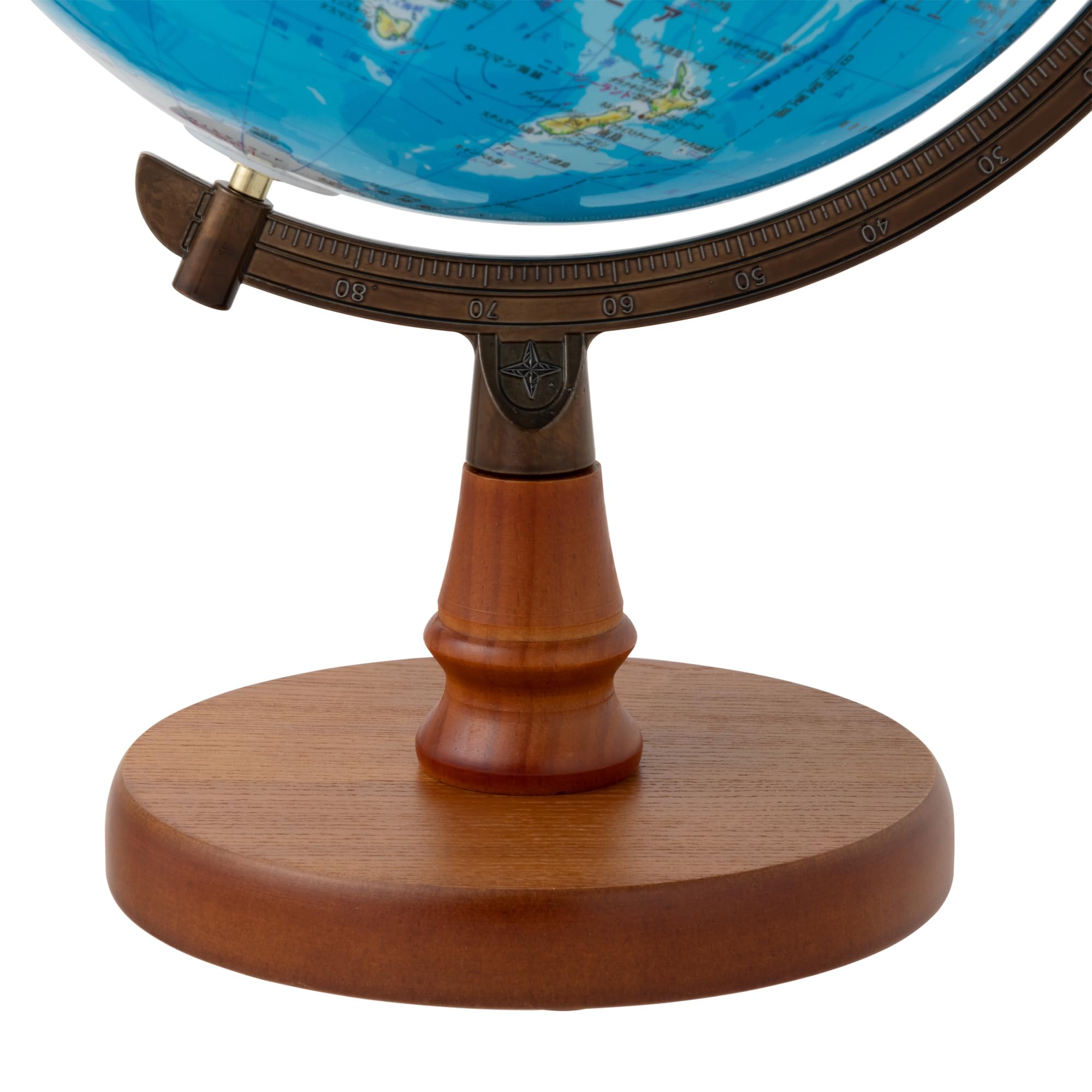 球径が26cmと手頃なサイズで,定番の人気商品。地図帳と同じ色調の地勢表現(土地の高さで色分け)。鮮やかな8色刷で,海は深さにより色分けしている。「世界で一番高い山」や「世界最深の湖」,航空路などを記載している。面白くてためになる付録付きです:「地球儀を楽しもう」,「世界の国旗」,「特製かんたんメジャー」(説明書付き)。
