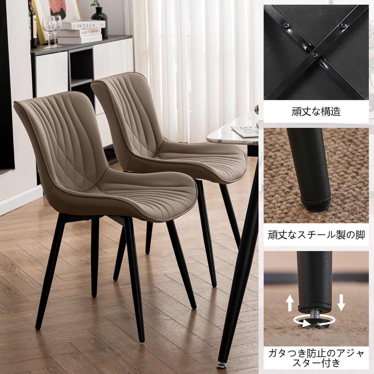 ️安心して使える耐久性:長持ちするように設計されたダイニングチェアは頑丈な金属フレームによって支えられ、最大136KGの重量に耐えます。また、耐久性の高い素材と構造など細部までこだわり、確かな安全性を実現しています。脚の先端にはガタつき防止のアジャスターを付いたおり、高さを微調整だけでなく、床への傷つきの心配もあります。
