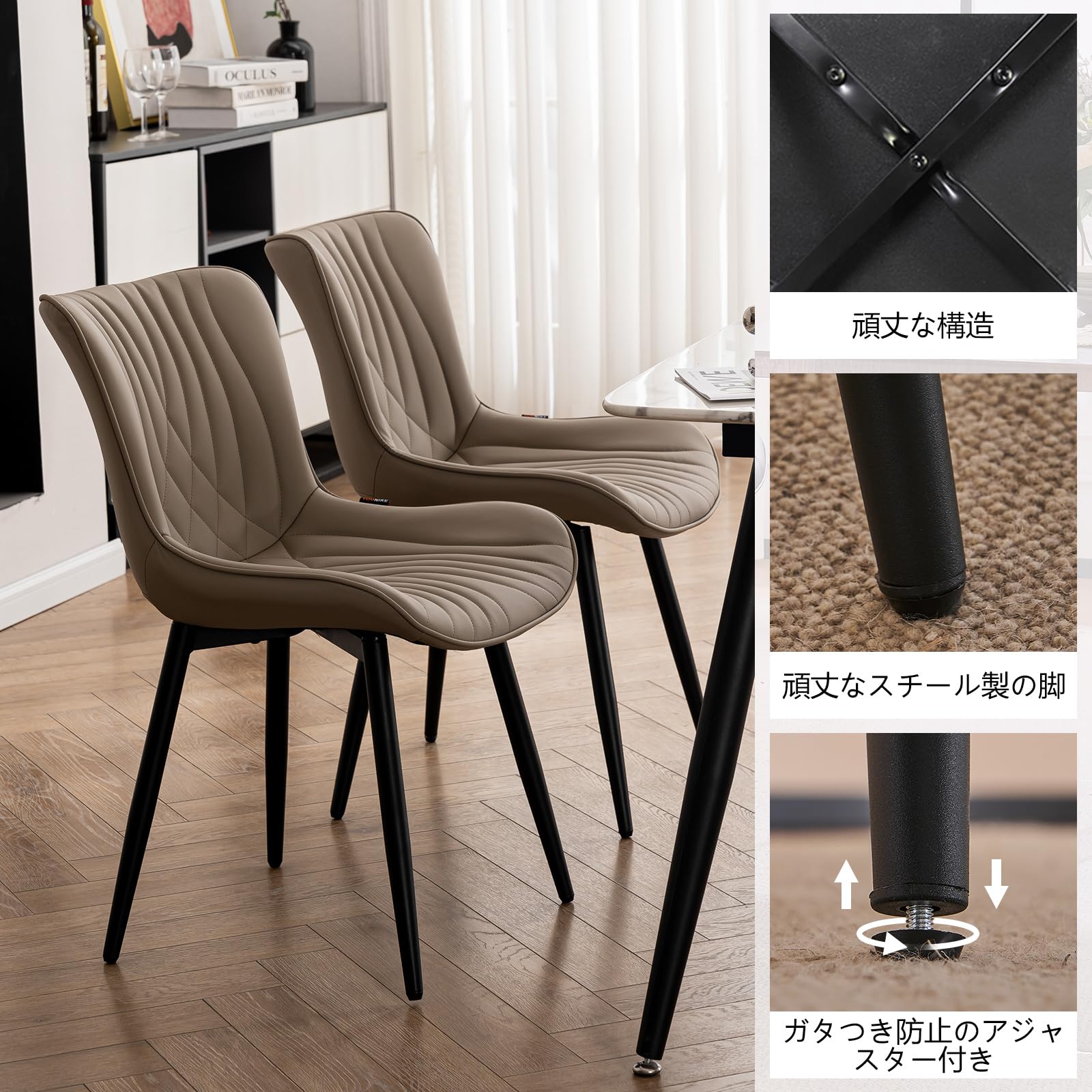 Kidol & Shellder ダイニングチェア 2脚セット おしゃれ 椅子 PUレザー クッション座面 食卓椅子 デスクチェア カフェ リビング 5年保証 カーキ