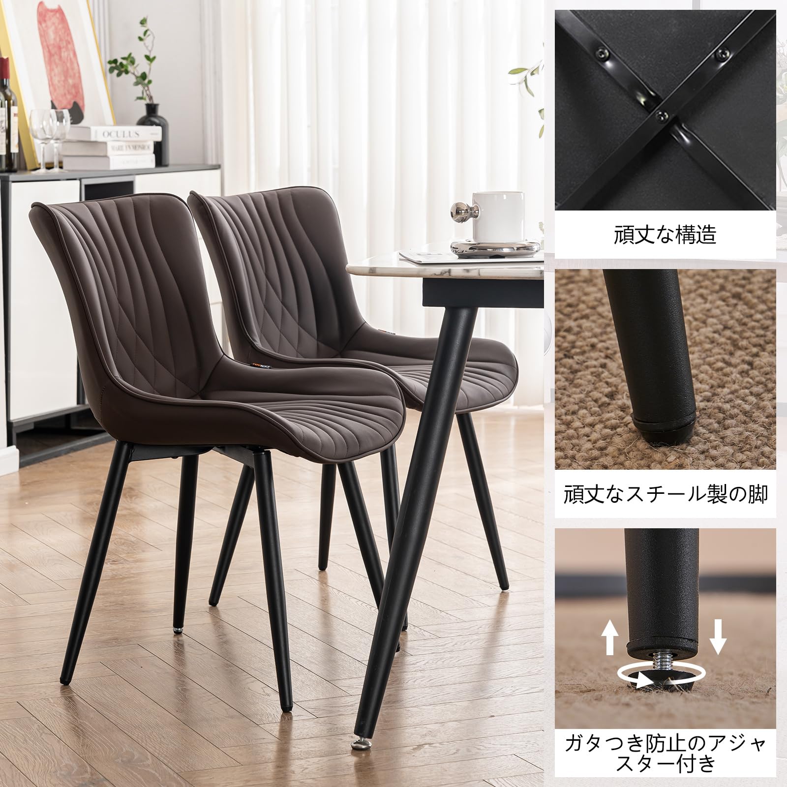 Kidol & Shellder ダイニングチェア 2脚セット おしゃれ 椅子 PUレザー クッション座面 食卓椅子 デスクチェア カフェチェア リビングチェア 5年保証 ブラウン