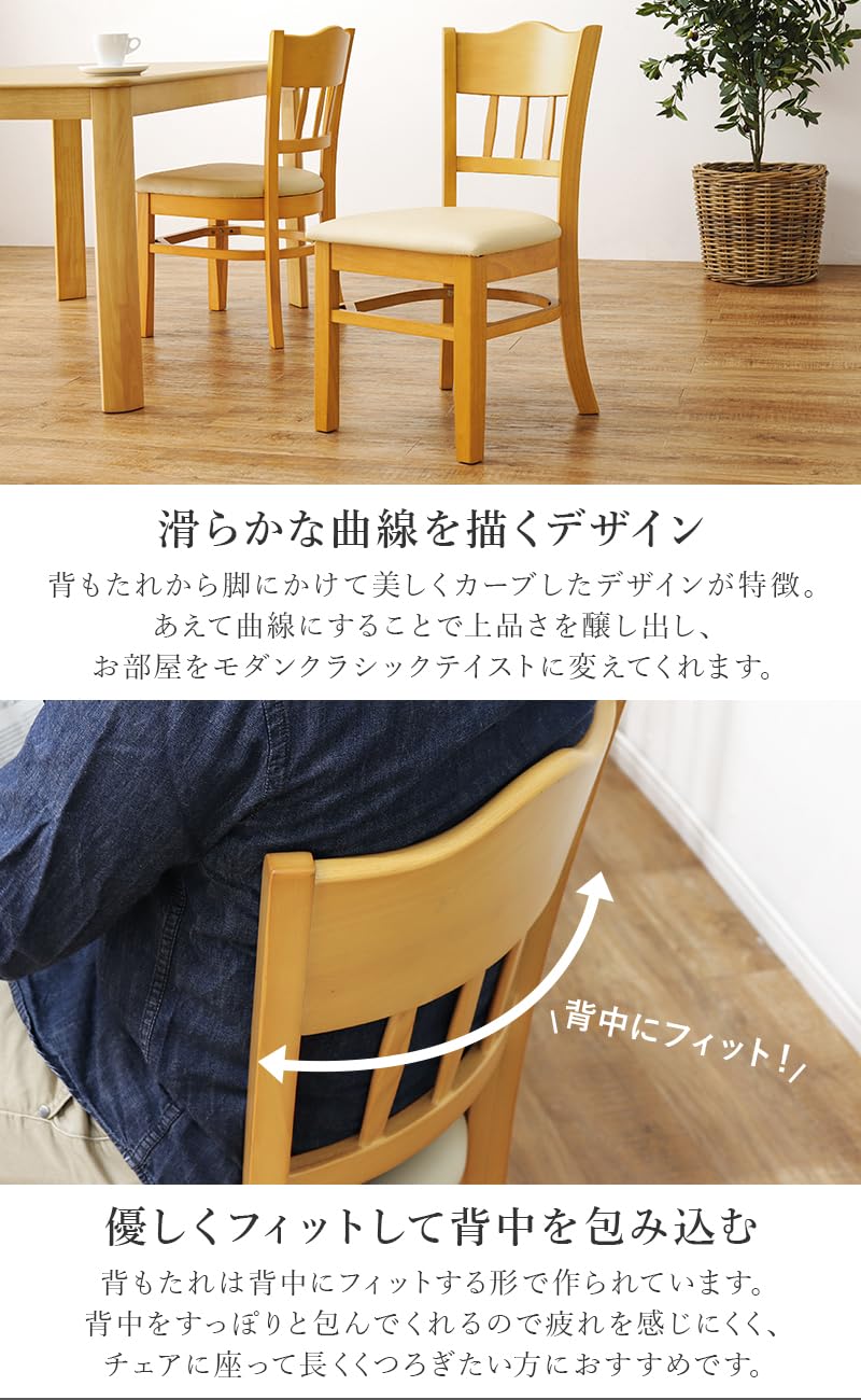 木の温かみを実感できる、天然木「ラバーウッド」を使用したダイニングチェア2脚SET。