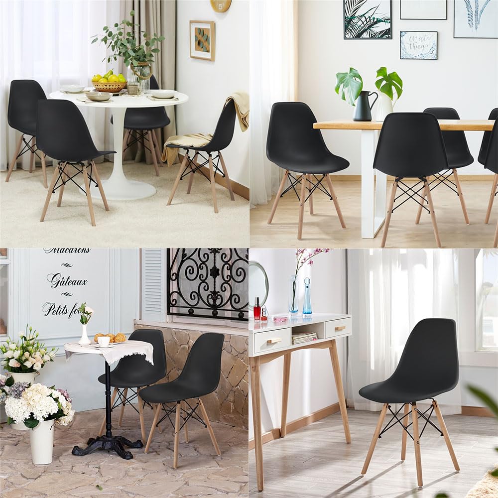 Yaheetech ダイニングチェア 椅子 4脚セット シェルチェア リビングチェア イームズチェア 食卓椅子 木製脚 背もたれ付き 組立簡単 人間工学 省スペース 軽量 多用途 ホテル用 会議用 北欧 おしゃれ シンプル コンパクト ブラック 46.5x54x81.5cm(4個セット)