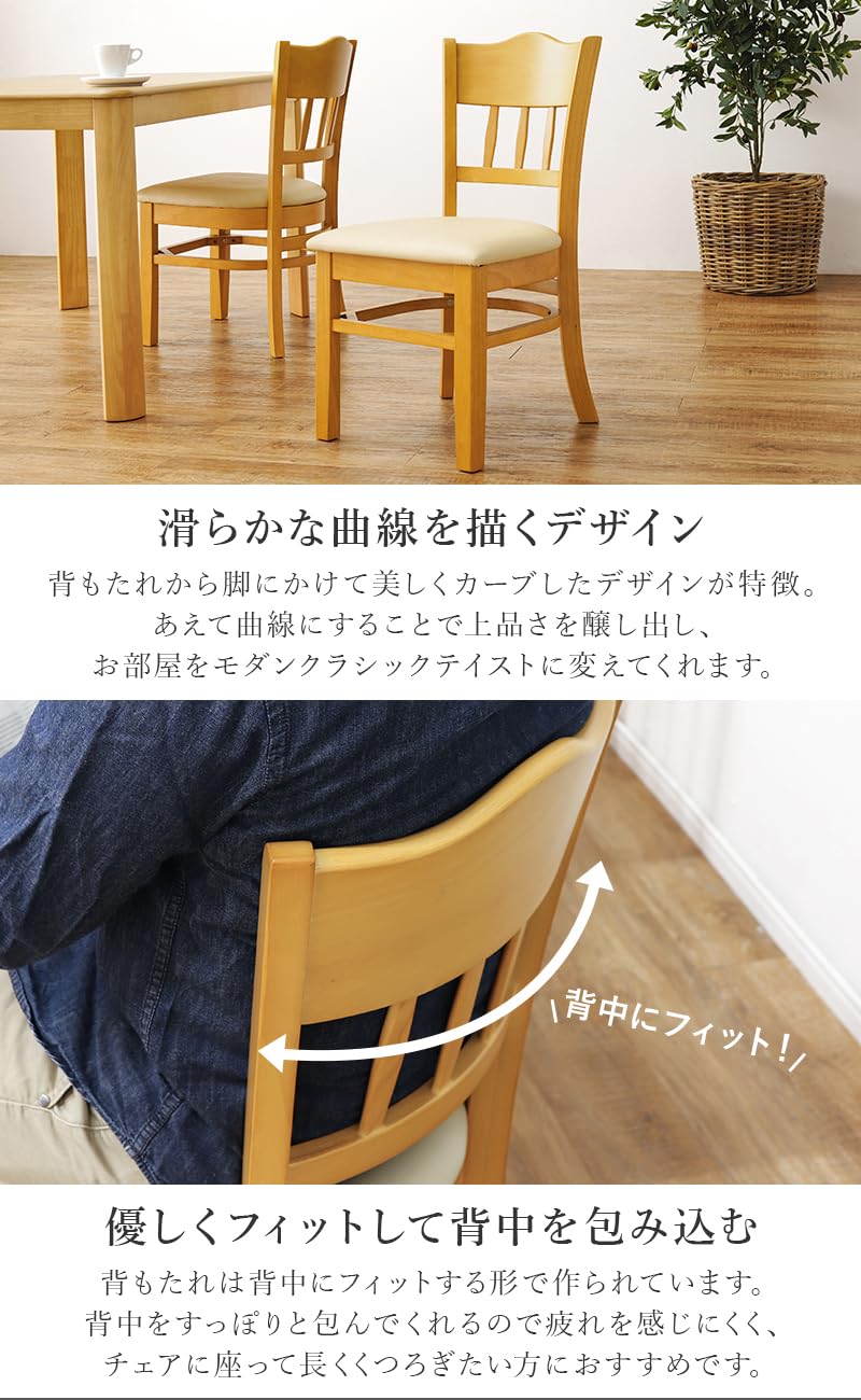 木の温かみを実感できる、天然木「ラバーウッド」を使用したダイニングチェア2脚SET。美しい木目となめらかな手触りが特徴です。