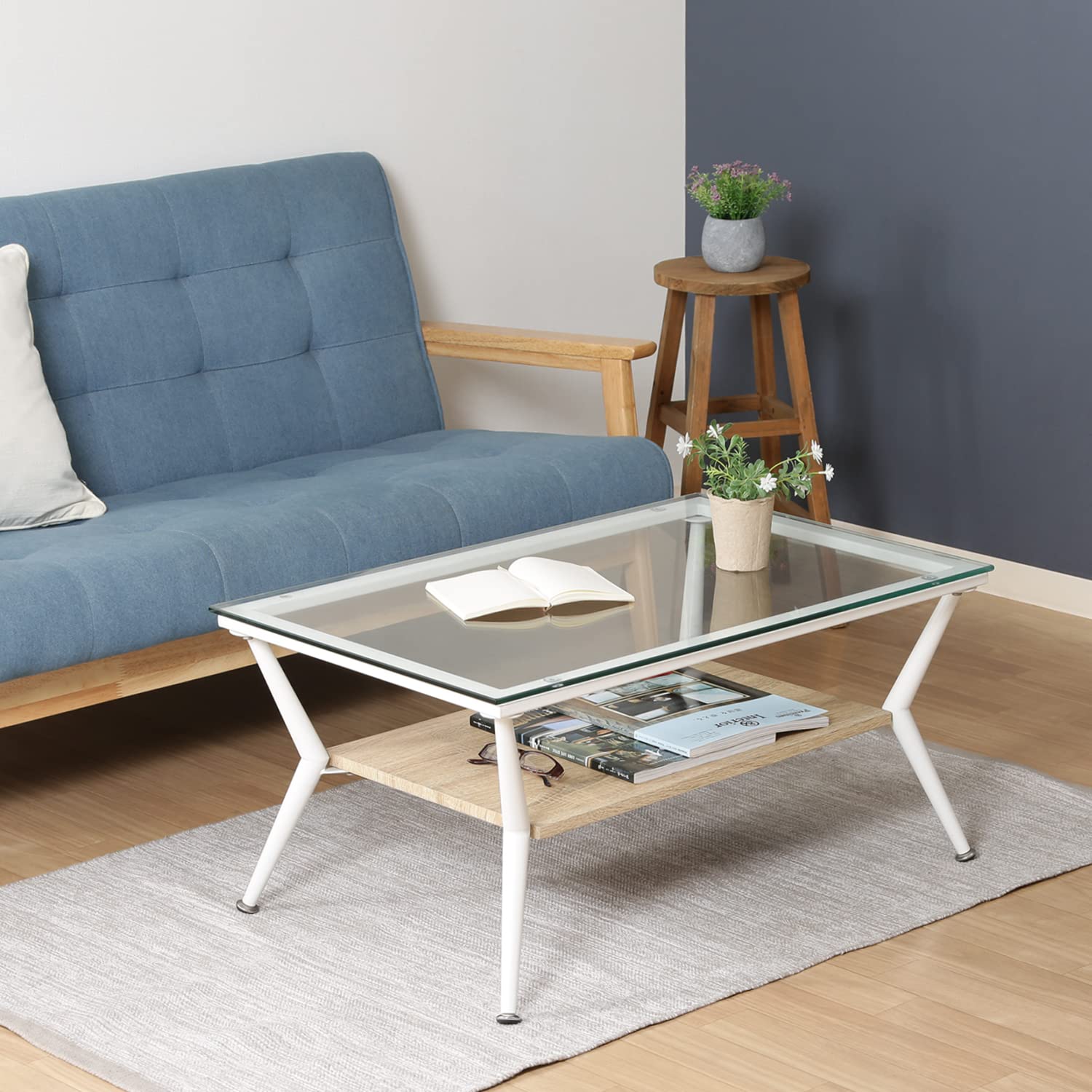 不二貿易 ディスプレイ ローテーブル 幅80cm ナチュラル 強化ガラス クレア 96226