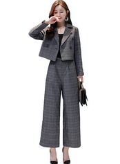 [Sueeya] (スイーヤ) スーツ レディース パンツスーツ 上下セット グレンチェック 着痩せ テーラード ファッション ワイドパンツ 九分 おしゃれ 2点セット 春 秋 冬 通勤 フォーマル OL