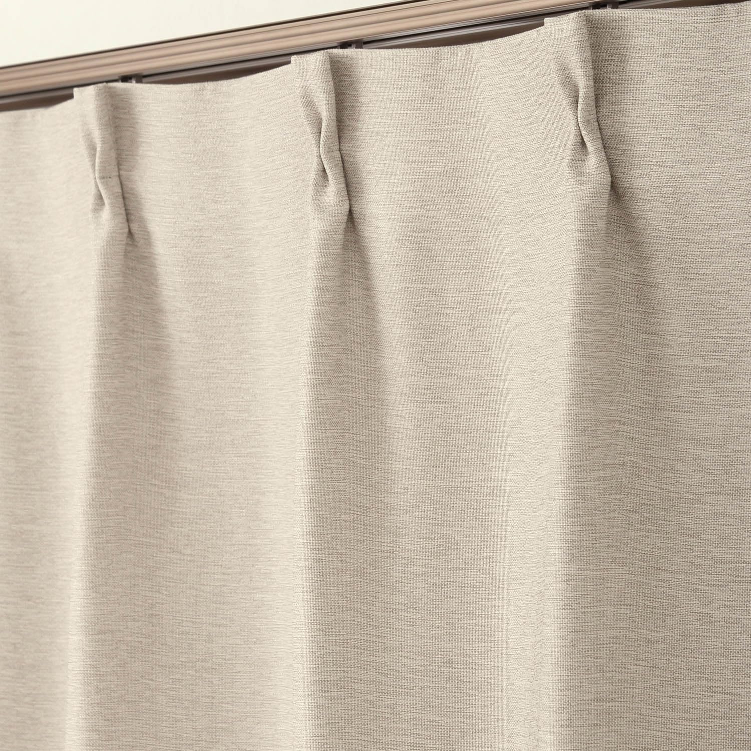 カーテン天国のロングセラー遮光カーテン 遮光等級:2級遮光(少々光を通しますので、お部屋が暗くなり過ぎません)同じ生地でも薄めの色なので2級遮光です。実感値としては光の遮り具合にけっこう差を感じる場合もございます。遮光率はカーテン生地に対する試験ですので、実際にカーテンとして使う場合、お部屋をかなり暗くするためには両サイドや上下部分も十分に覆うなどの工夫が必要です。素材感たっぷりの二重織り生地の2級遮光カーテンです。二重織り構造は空気の層を作りやすく冷暖房効果アップが期待できます。生地が燃えにくい防炎加工つき(カーテン裏側に防炎ネームタグ縫付)。児童館、保育園、幼稚園、小学校、中学校、高校、病院、介護施設、ホテル、公共施設、消防法で防炎品使用が義務の場所にもおすすめ。商品画像は巾100x高さ178cm2枚組の写真です。■ミラーレースカーテンとのお得なセットやカフェカーテンもございます。「カーテン天国 5089」で検索してください。