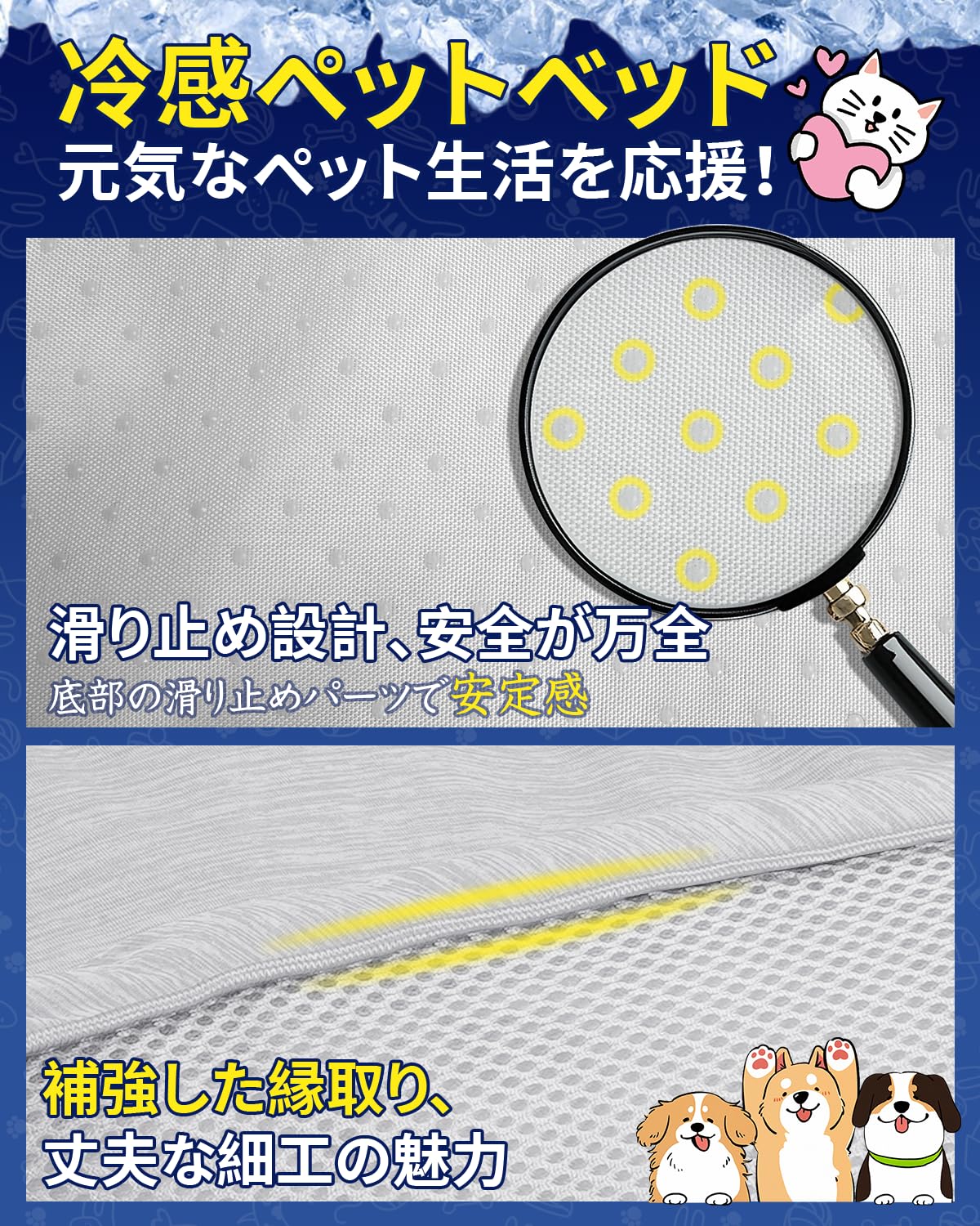 犬 猫 ベッド 夏 冷感 ひんやり ペットベッド 猫ベッド ペットベッド 犬用ベッド 夏用クッションマット ペットクッション 接触冷感 クールマット 通気性 涼しい 断熱 洗える 滑り止め 中小型犬