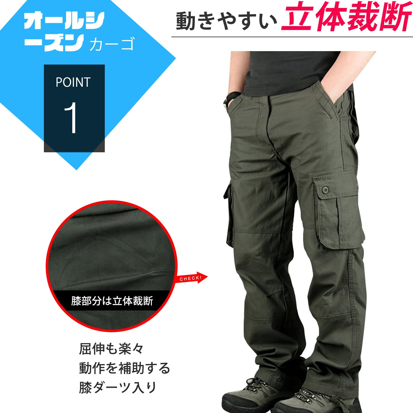 [Hilarocky] カーゴパンツ メンズ ズボン ワークパンツ ゆったり 大きいサイズ 多機能 ロングパンツ 綿 無地