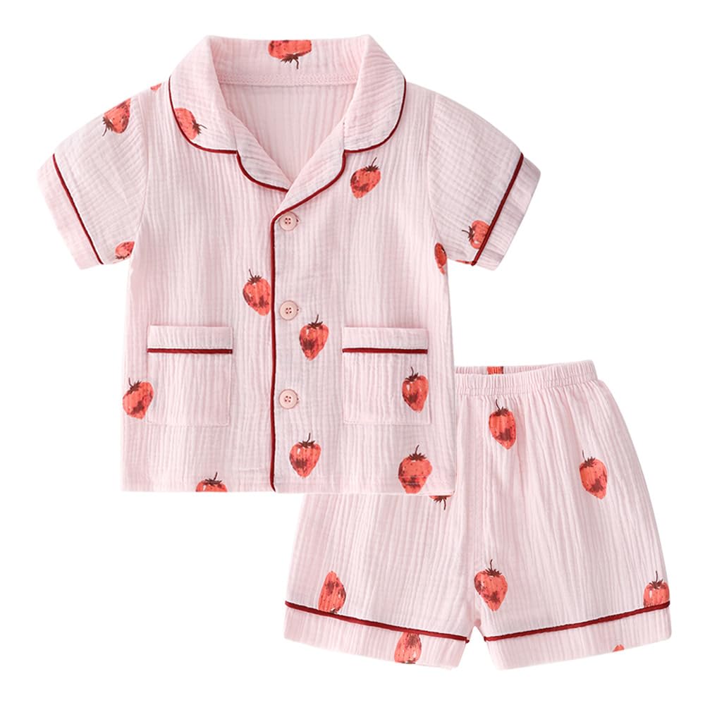 【人気商品】[KISBINI] 子供服 パジャマ 男の子 女の子 半袖 上下セット 2点 部屋着 普段着 ガーゼ 綿 ガールズ 可愛い 夏 ルームウェア 前開き 寝巻き 80 90 100 110 120 130 140 | libertyislan