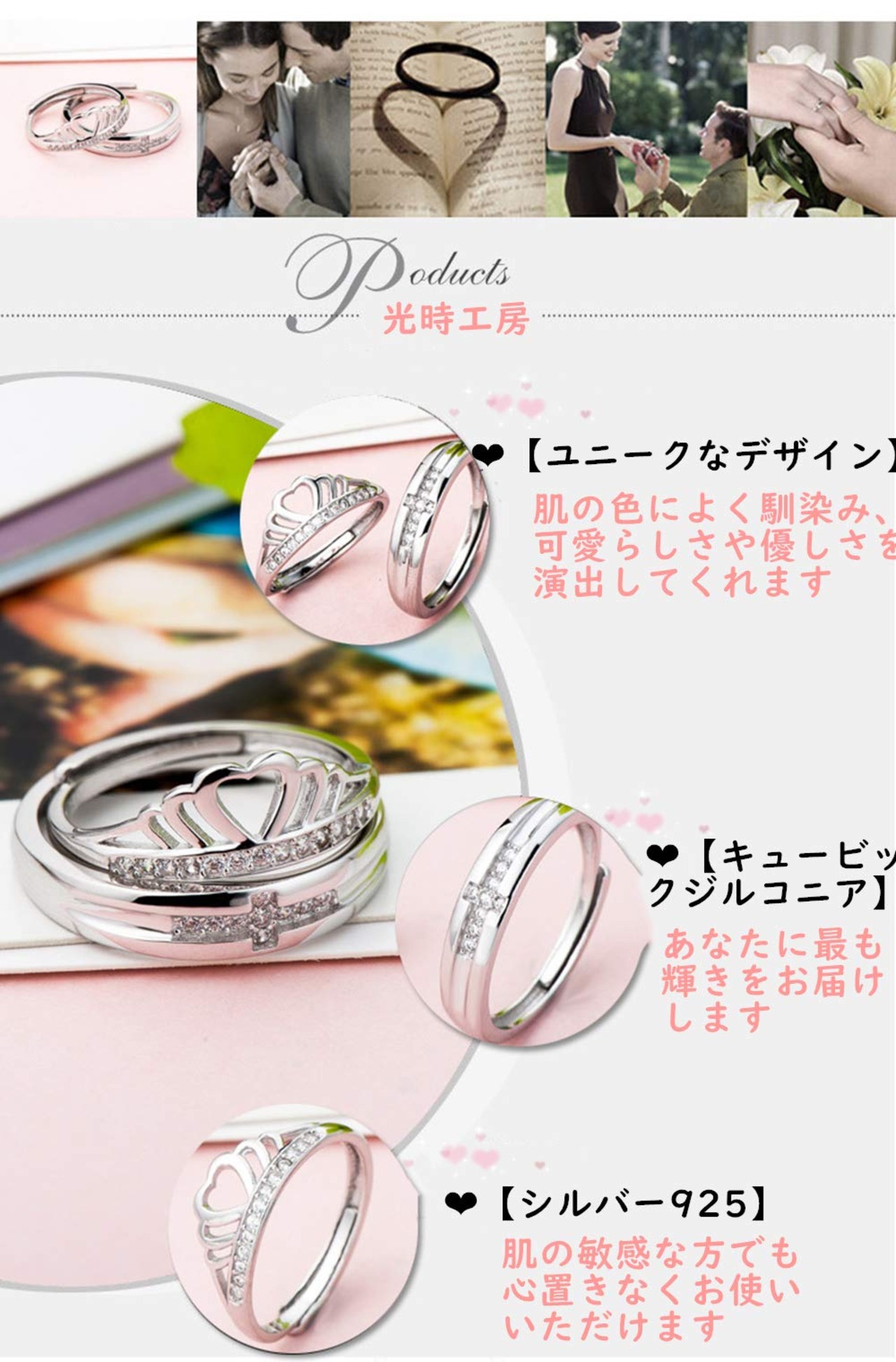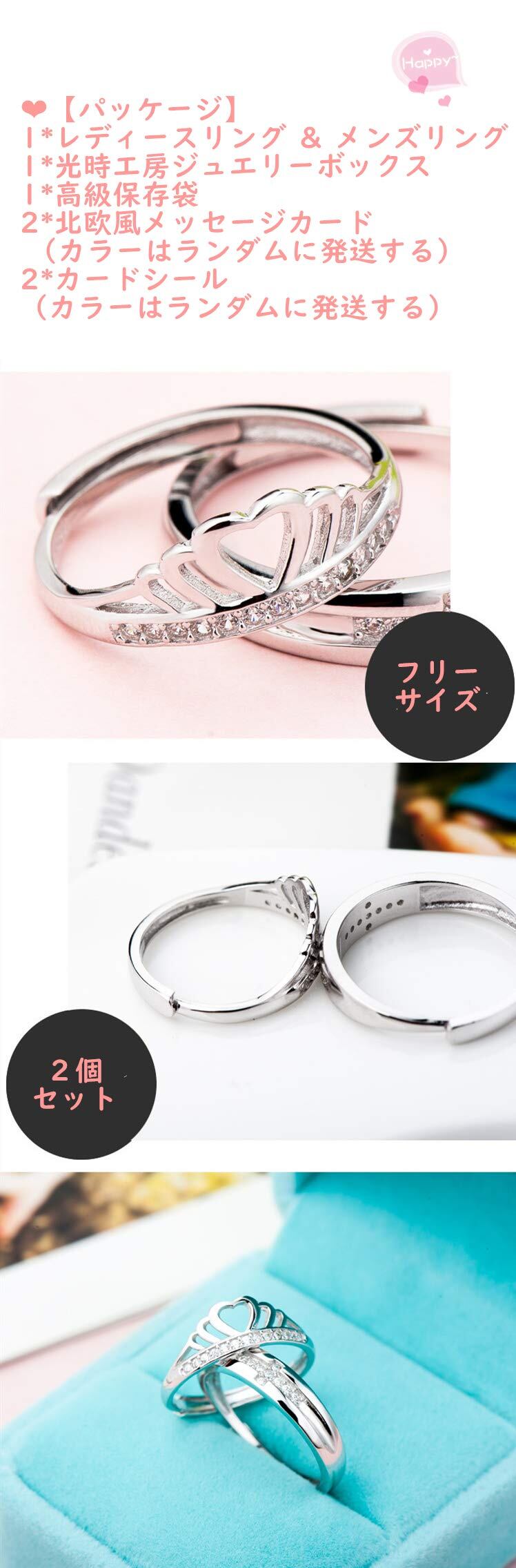 光時工房 ペアリング シルバー 結婚指輪 婚約指輪 カップル リング レディースリング & メンズリング 純銀製指輪 2個セット オープンリング エンゲージ リング フリーサイズ 全7種(恋)