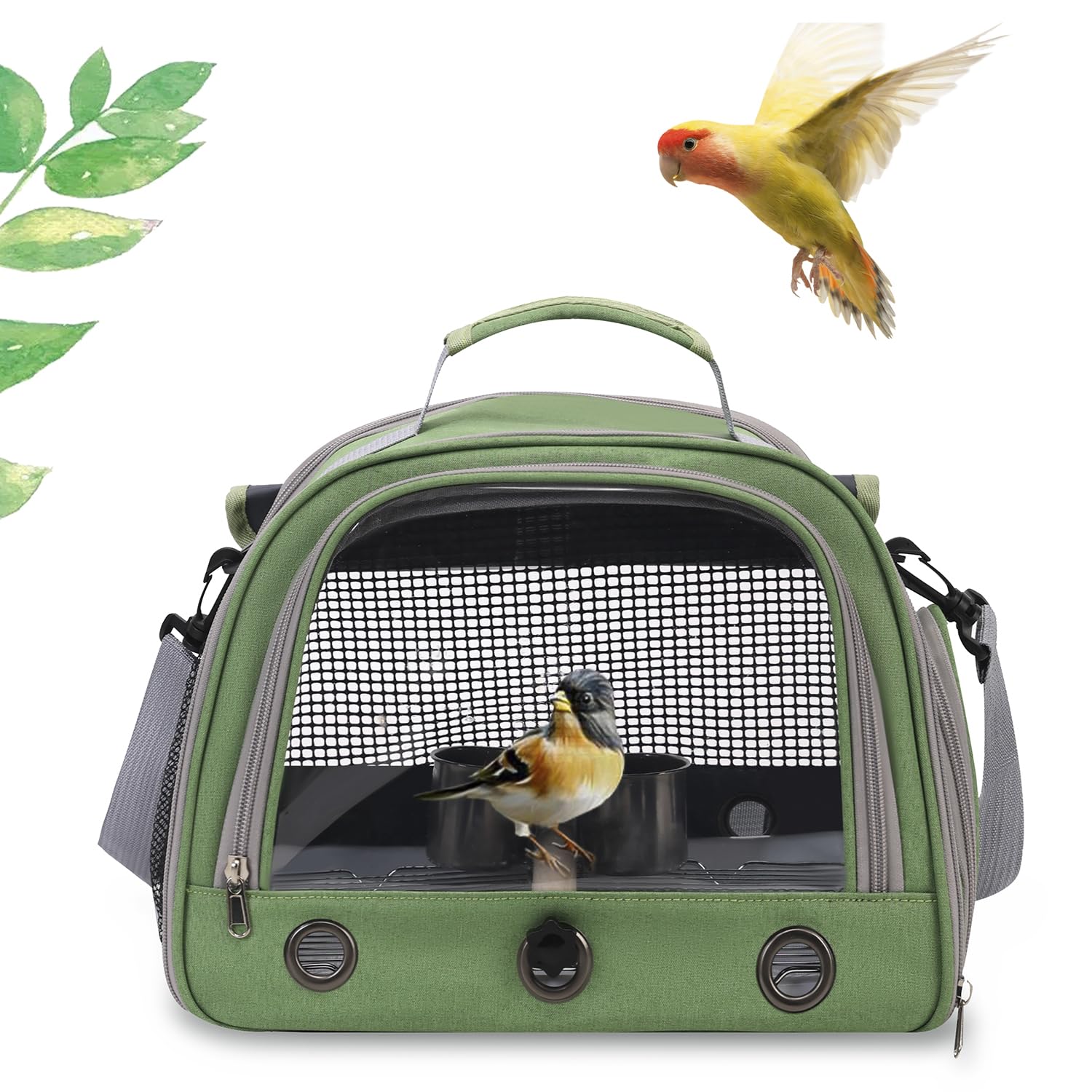 【2022最新】【改良モデル】Hopeholic 鳥 キャリー 移動用ケージ 手提げ/肩掛け インコ 文鳥 手乗り キャリー リュック 止まり木付き 餌入れ 鳥 バード ケージ キャリーケース 持ち運び 散歩 避難 通院 おでかけ 鳥かご 移動用 折りたたみ式 グリーン