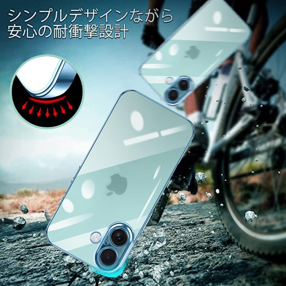 iPhone 16 用 ケース クリア 耐衝撃 iPhone16 用 カバー 軽量 薄型 TPU アイフォン16 用 スマホケース ワイヤレス充電対応 擦り傷防止 落下防止 ストラップホール付き メッキ加工- ブルー
