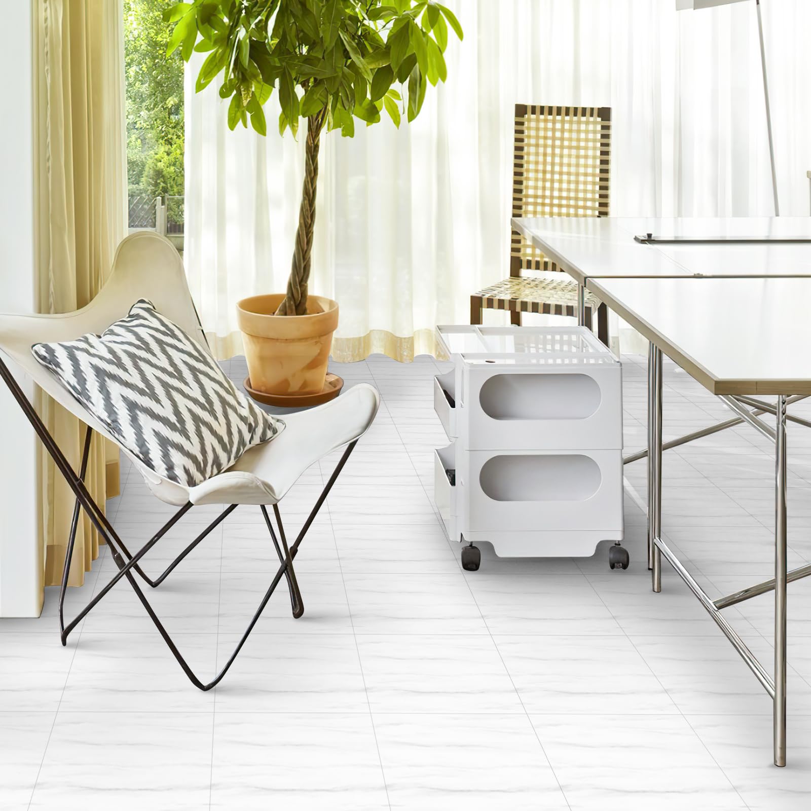 MORCART「優しい白の大理石」フロアタイル 置くだけ 接着剤不要 フロアシート 床 リメイクシート 貼るだけ DIY トイレ 浴室 玄関 キッチン フローリングシート 防水 滑り防止 剥がせる 賃貸OK (30*30cm*10枚)