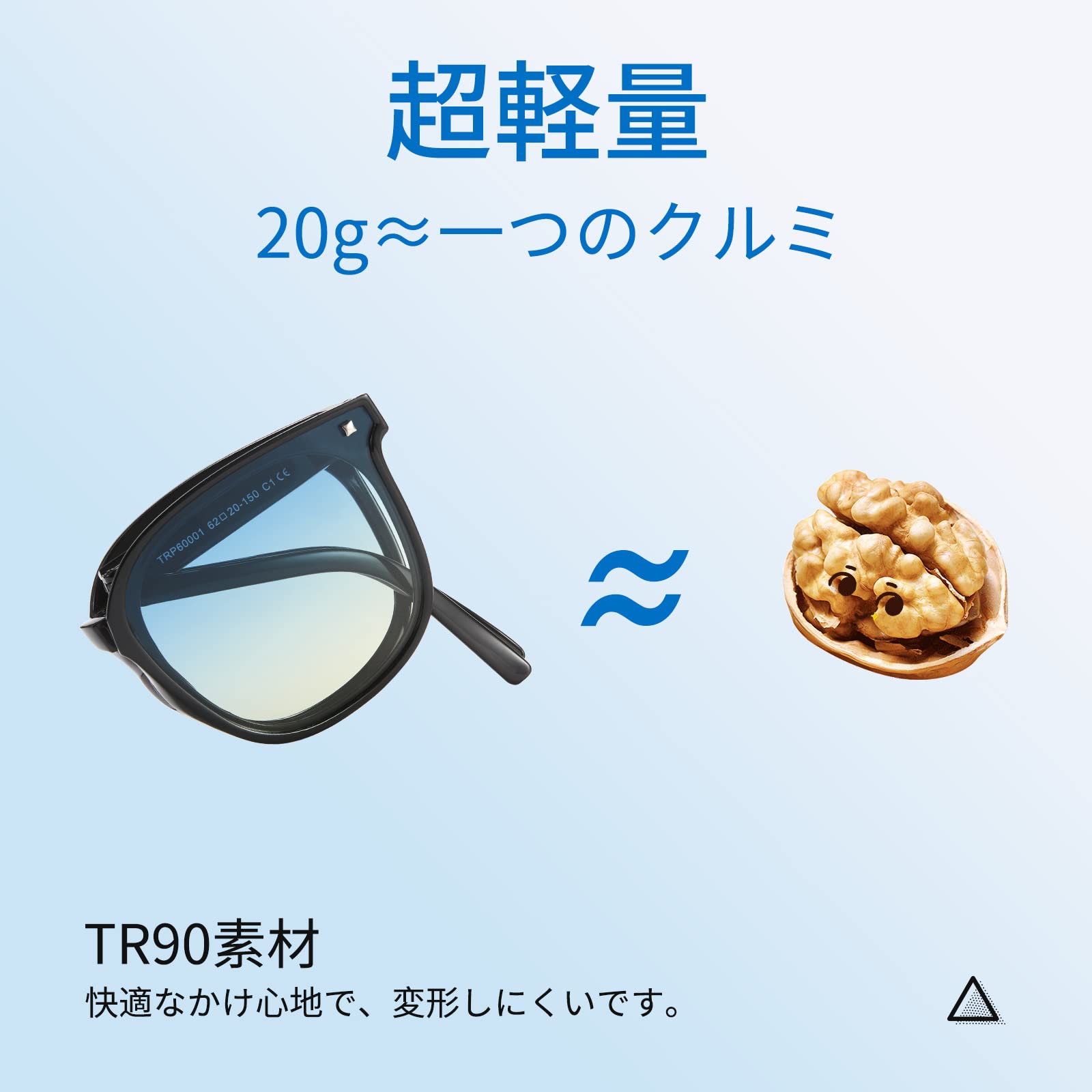 UV400保護&偏光レンズ:偏光レンズは、乱反射を防ぎ、眩しさも抑えながら、視界をより自然に見えます。UV400保護で有害なひかりをしっかりカットし、強い紫外線から目と目周りの肌をよく守ってくれます。さらに、視認性も向上させ、長時間使用後も目が疲れにくいです