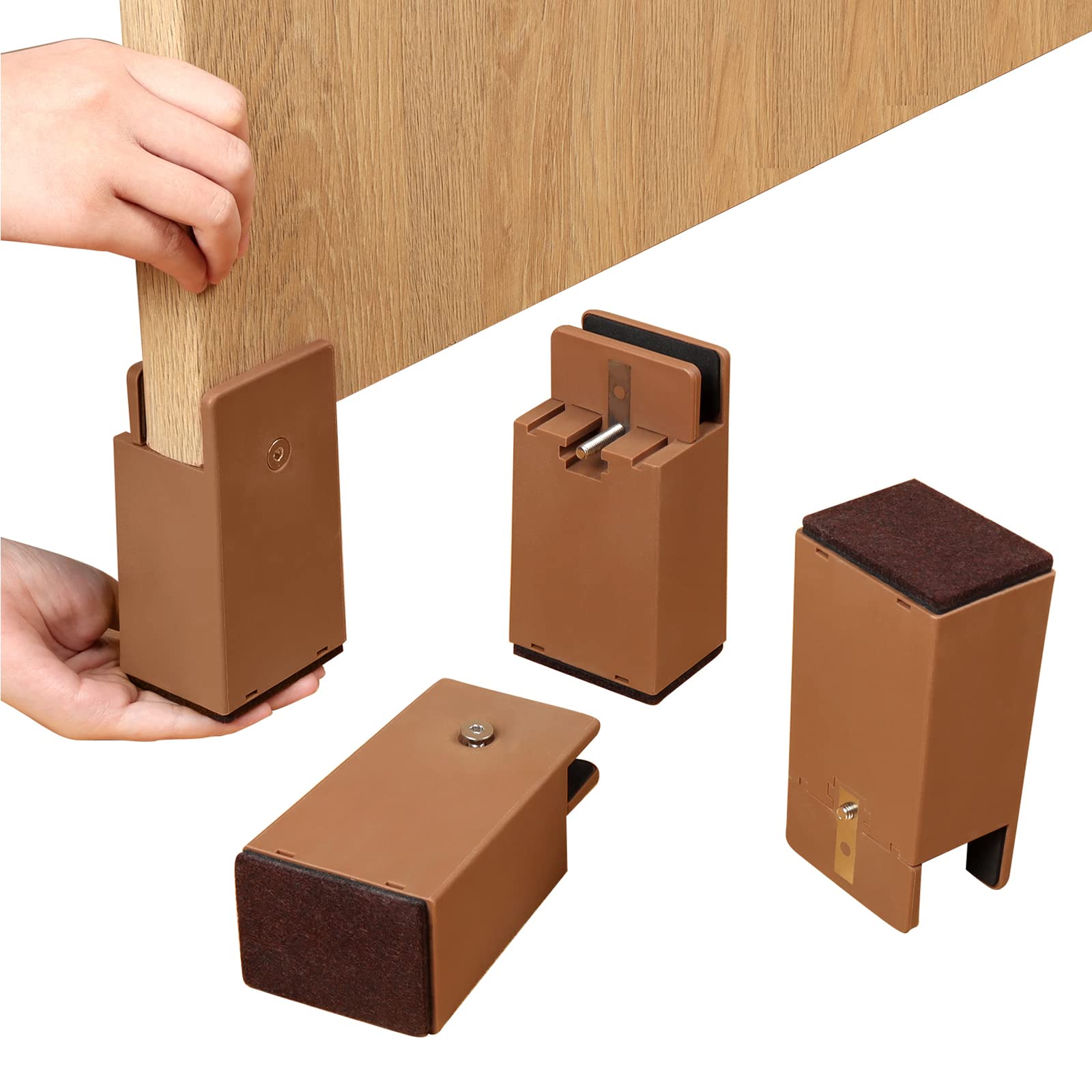 Ezprotekt 高さ調整 継ぎ脚 ベッド・テーブルの高さ調節 テーブル 脚 継ぎ足 こたつ 継足し テーブル脚台 100mm高さを上げる 4個セット 幅を調節できる・0mm~37mm (ブラウン)