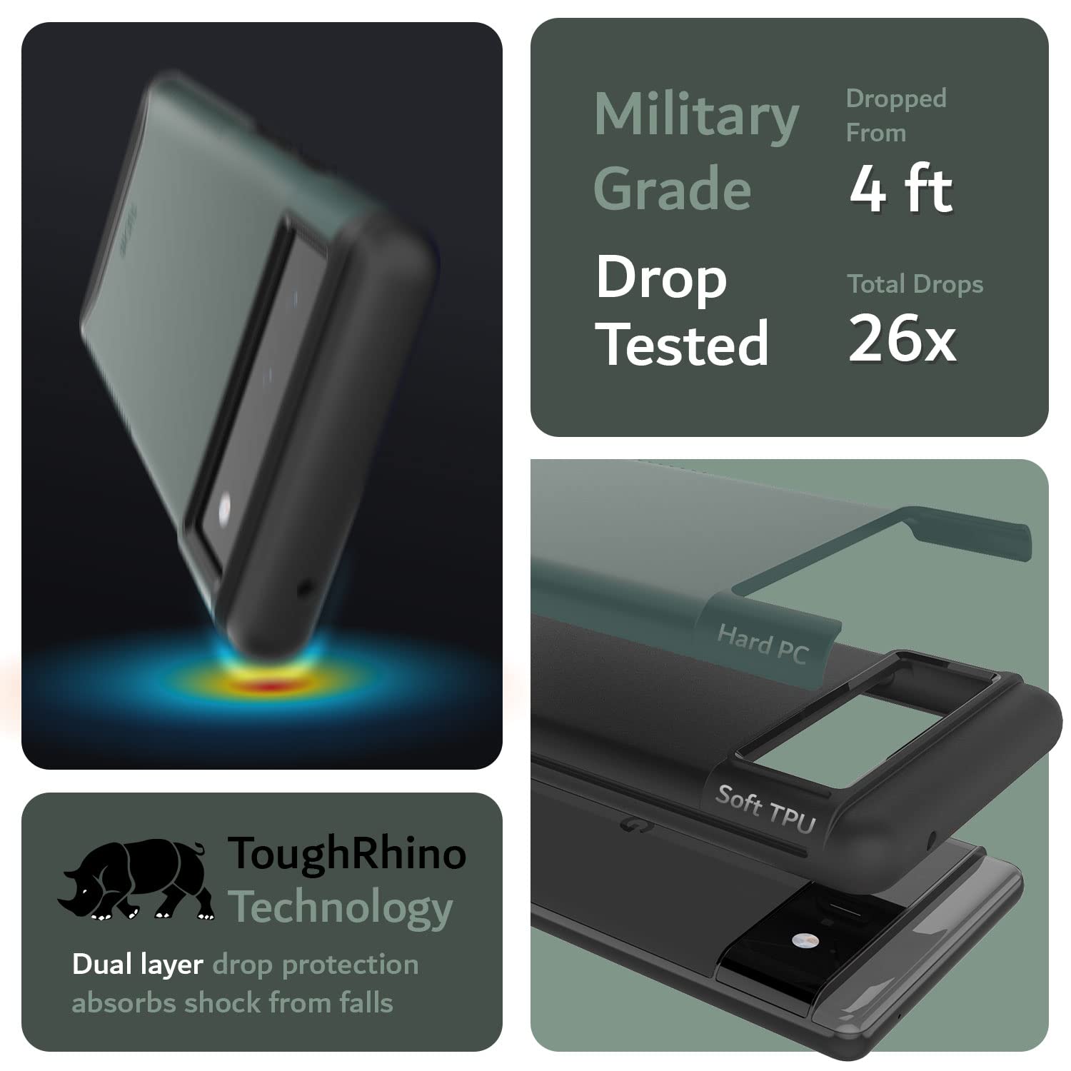 【2022最新】TUDIA Google Pixel 6 ケース、「マージ」米軍MIL規格 2層保護 耐衝撃性超薄型TPU保護ハード Pixel6 ケース - ハンターグリーン | libertyislan