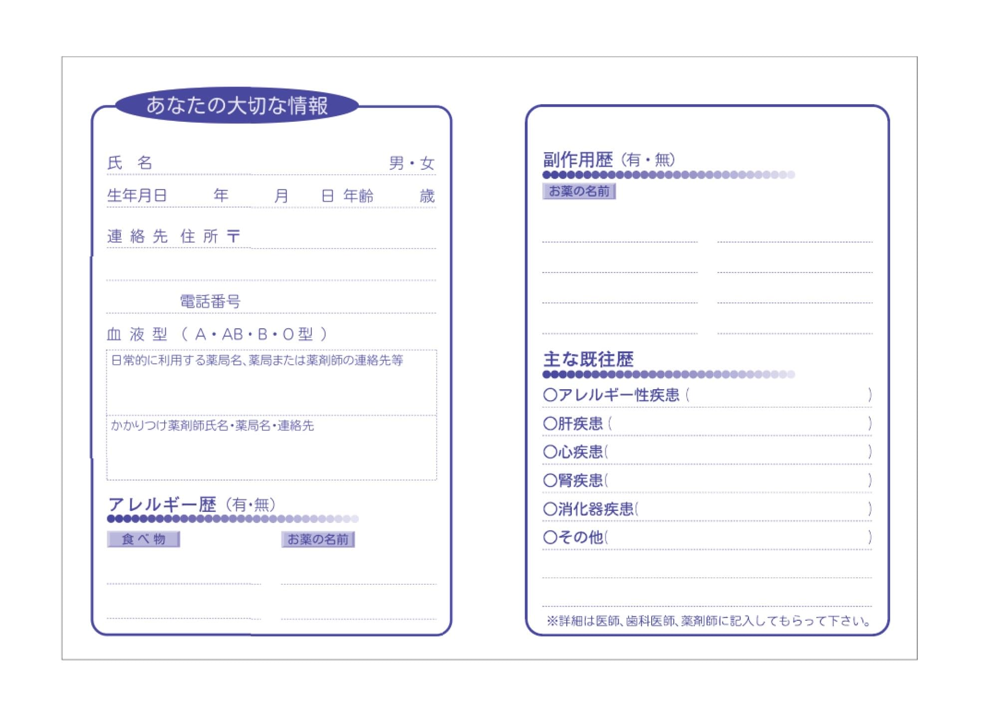かわいいキャラクターのおくすり手帳です。