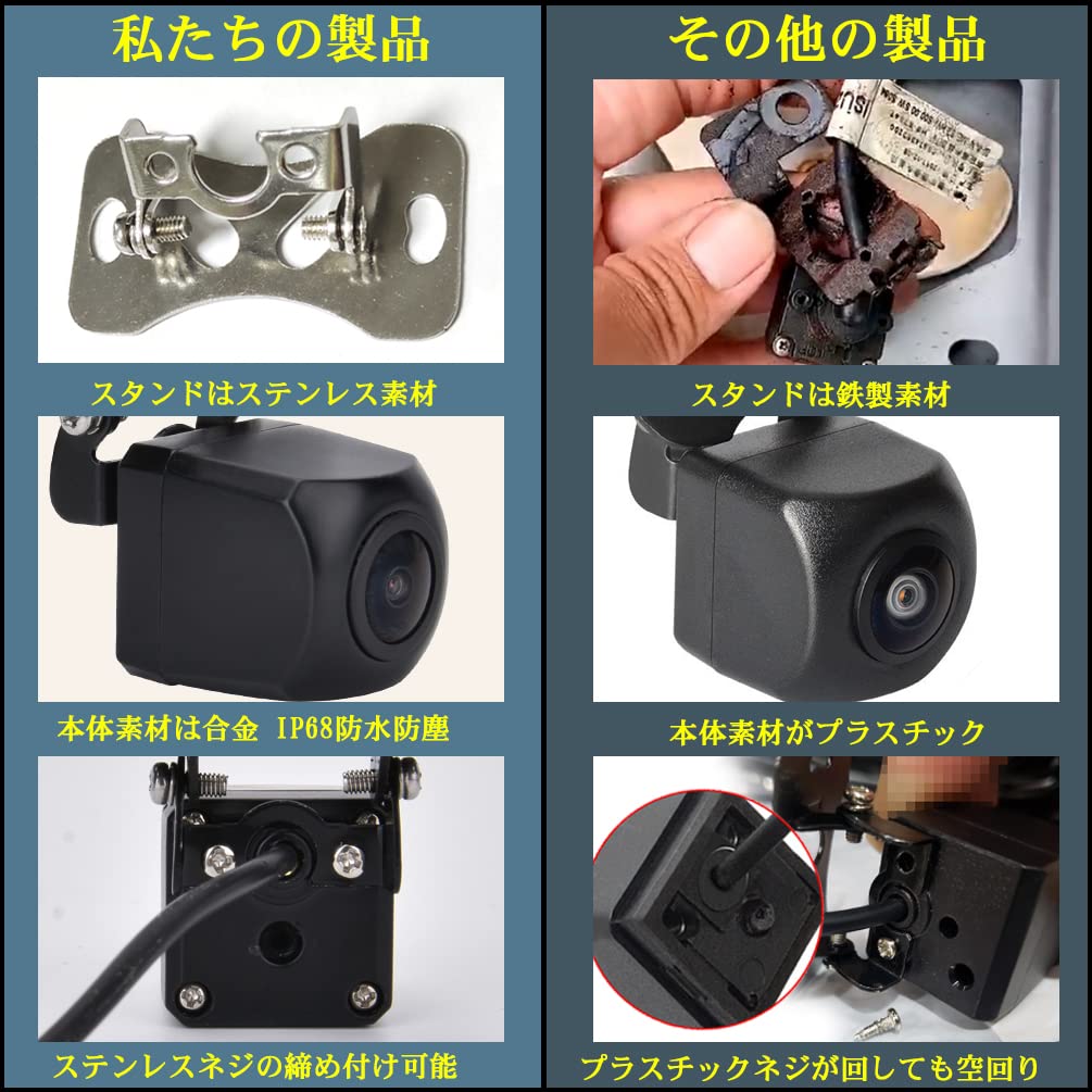 【12V・100万高画質・MCCDチップ搭載】一般的なメーカー品は12V・30万画素が多い中、当店のバックカメラは12V~24V・100万画素と非常に高画質なのが特徴になります。MCCDチップ搭載し、キレーな画像、自然な色彩、画質にこだわりがあるお客様に一層ご満足していただけます。※本製品は100万画素で出入力しますが、お客様のナビが100万画素(1280×960)に適合しているかご確認お願い致します。万が一100万画素に対応していないナビの場合でも画質を落として出力しますので、ご使用は可能です。