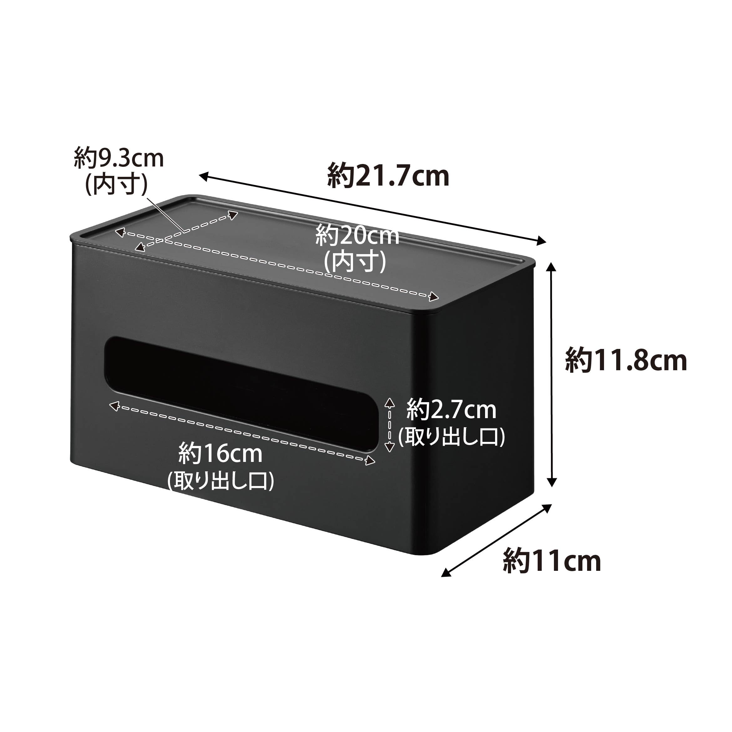 内寸:ソフトパックティッシュ収納部:約W21×D5×H10.8cm ウェットシート収納部:約W16.5×D4×H10.8cm トレー部:約W20×D9.3cm ティッシュ取り出し口:約W16×H2.7cm ウェットシート取り出し口:約W5×H4cm