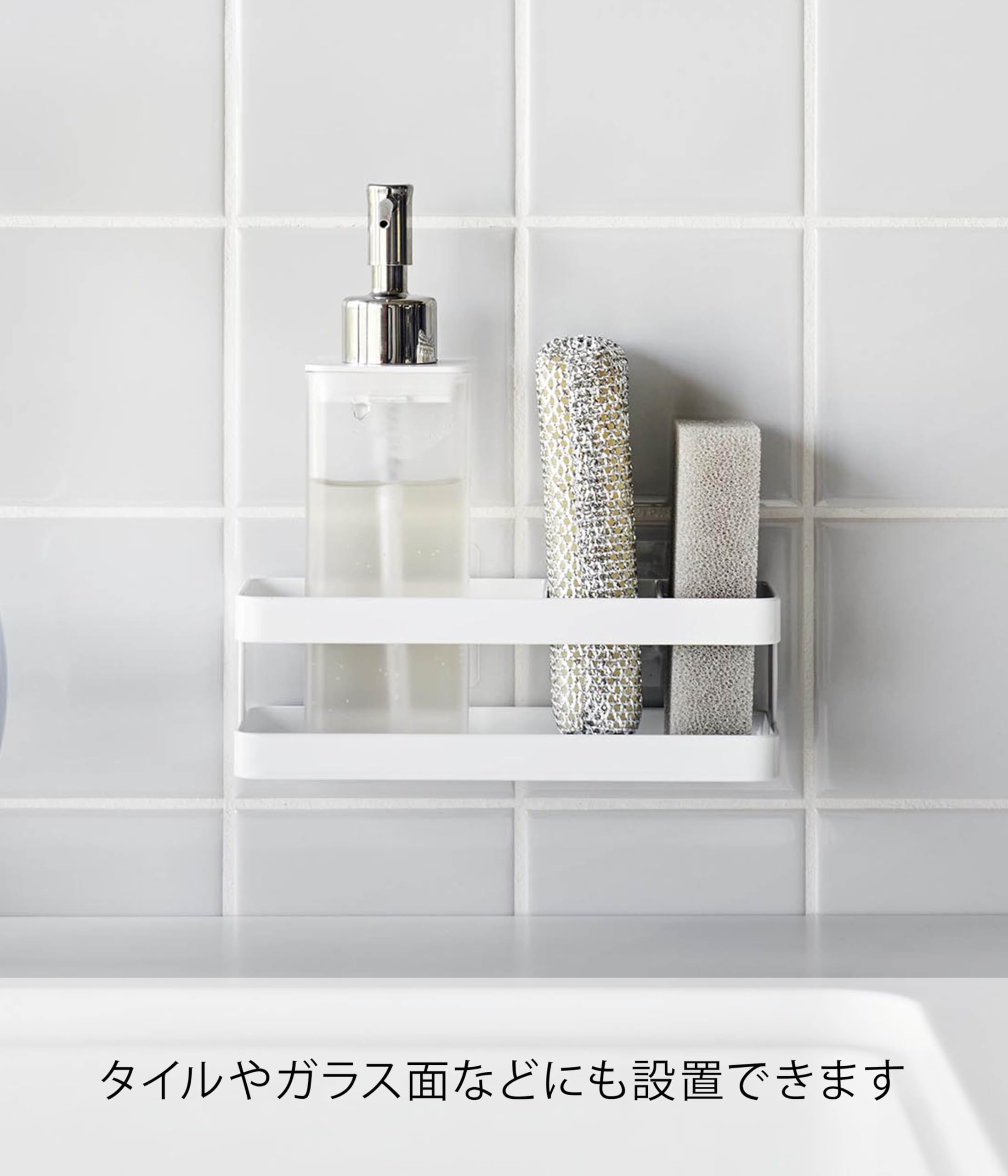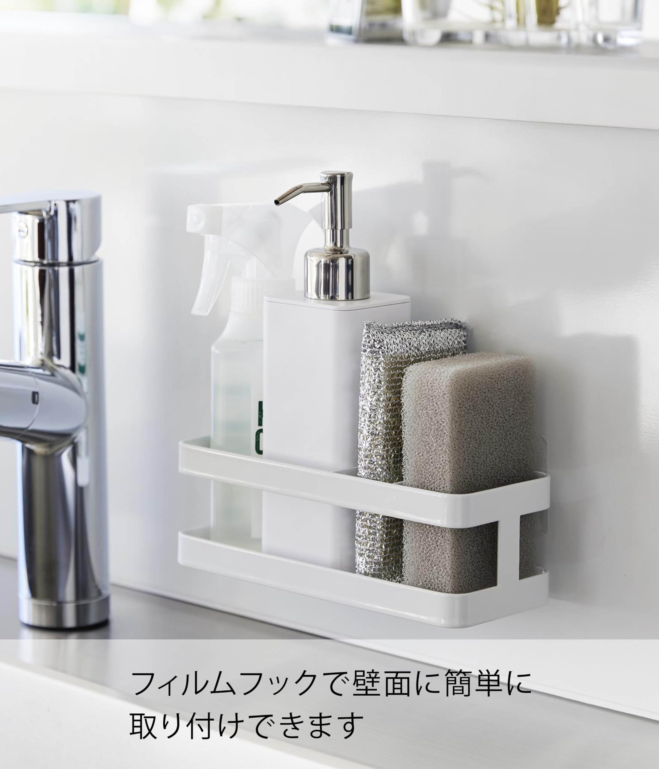 【在庫処分】山崎実業(Yamazaki) フィルムフック スポンジ & ボトルラック ホワイト 本体:約W18×D7.5×H6cm(フィルムフック含まず) タワー tower スポンジホルダー スポンジ置き シンク収納 2167 | libertyislan