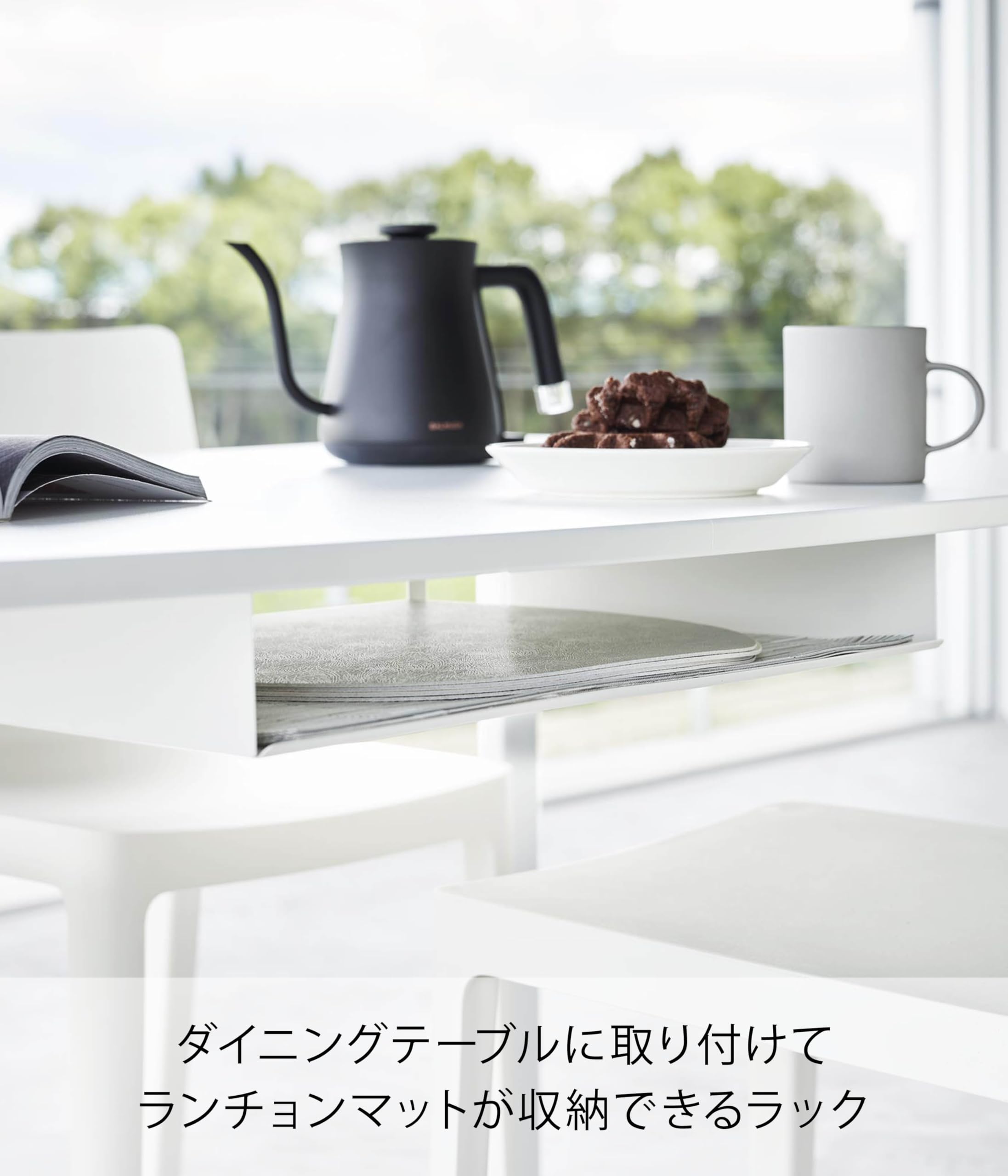 ダイニングテーブルやキッチンカウンター下に取り付けて、使用頻度の高いランチョンマットやトレーなどが収納できるラック。