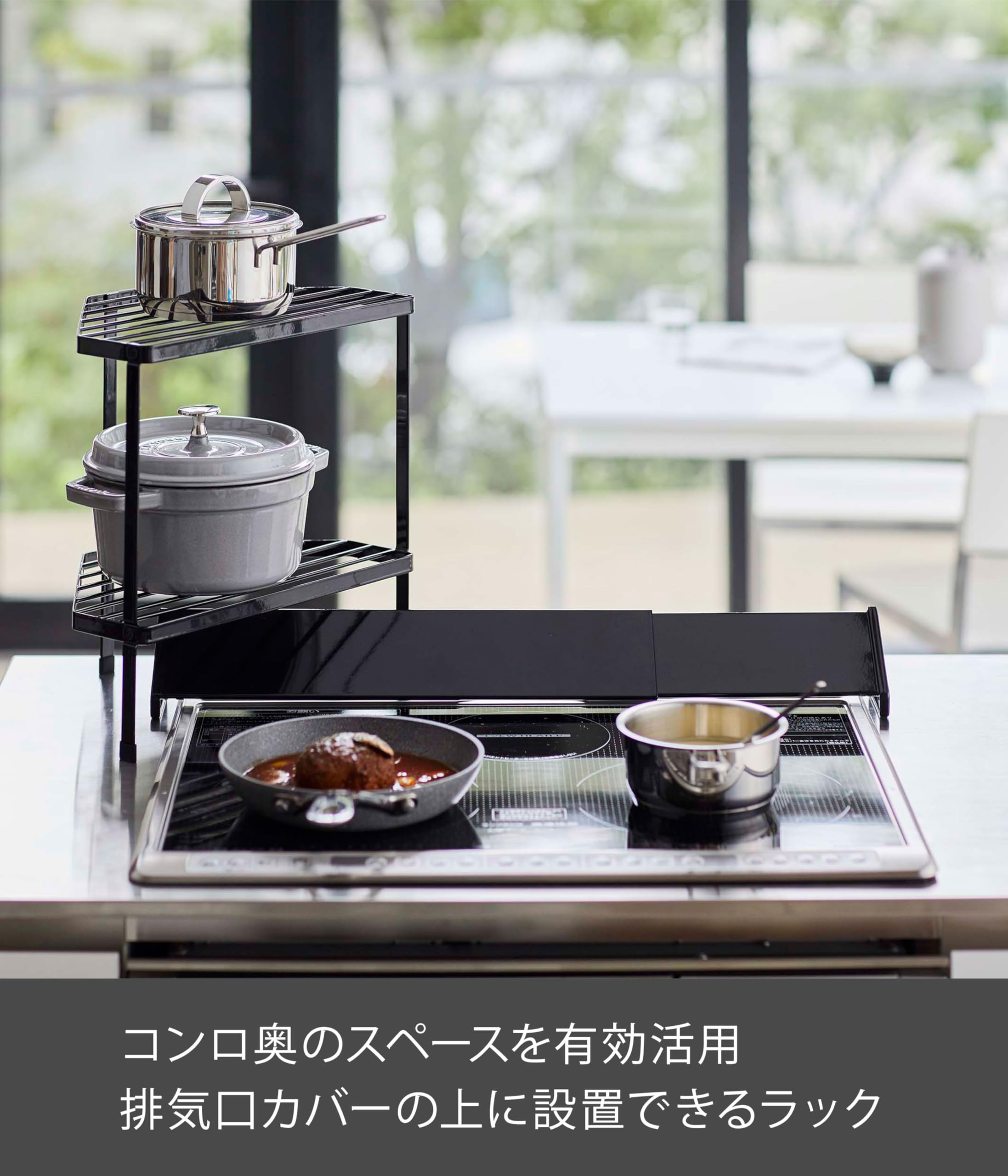 山崎実業(Yamazaki) 排気口カバー上 コンロコーナーラック 2段 ブラック 約W34XD22.5XH34.2cm タワー 高さがある 鍋置き フライパン置き 5259