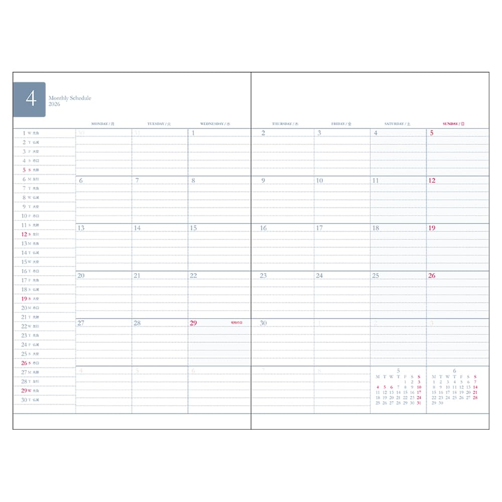【レイアウト】1ヶ月チャート、1ヶ月ブロック 【カラー】ブラック