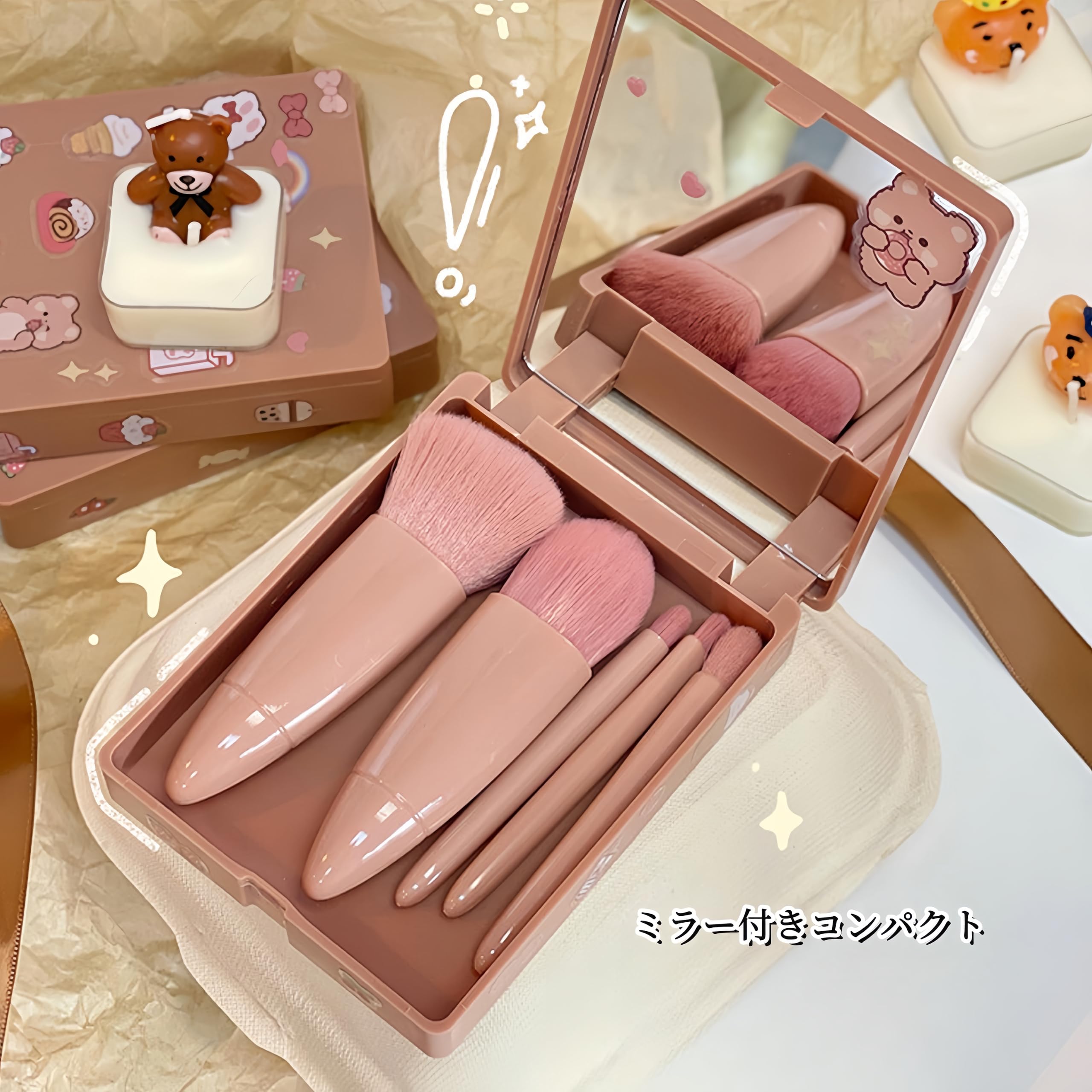 LIANGNISHI トラベル5点ミラーボックスメイクブラシセット、ポータブル、多機能パウダーブラシ、チークブラシ、美容ツール-02