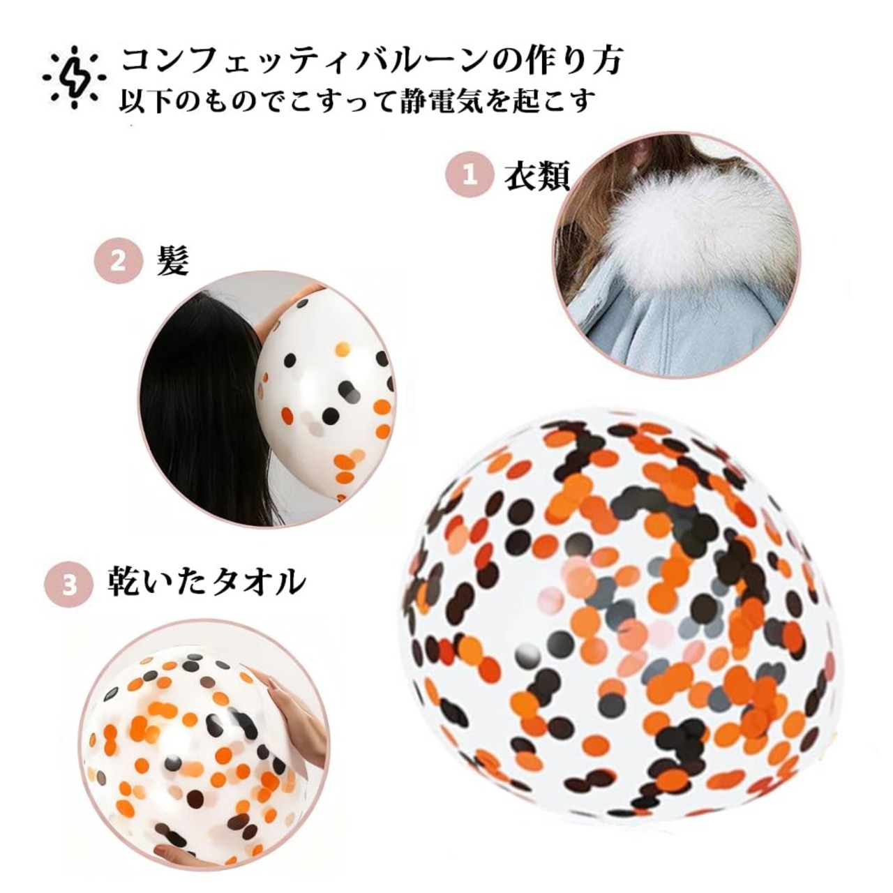 【50pcsバルーンセット】ブラックバルーン*18、オレンジバルーン*17、ホワイトバルーン*10、紙吹雪バルーン*5、リボン*2
