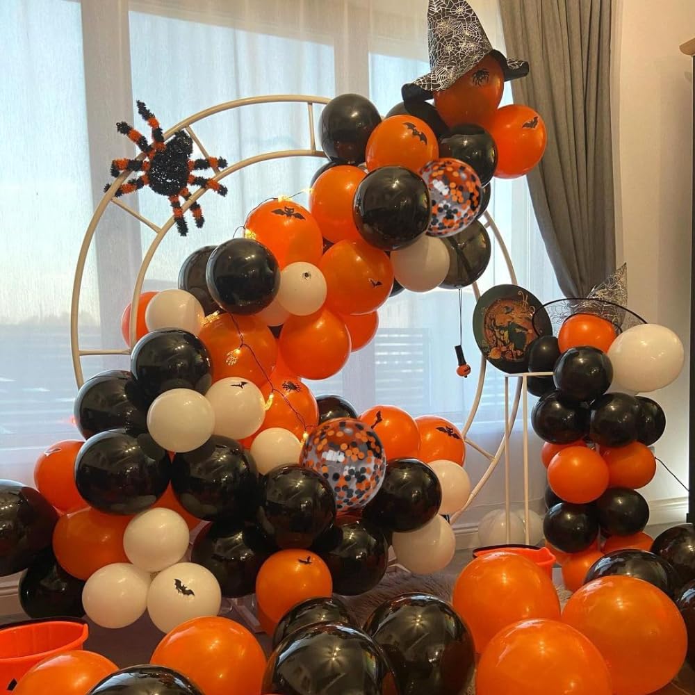 【デコレーション】ハロウィンを連想させる色彩、立体的でボリュームのあるバルーンデコレーションに仕上がります!ヘリウムまたは空気の両方で使用可、しっかりと結ぶと数日間気体を保持できます。