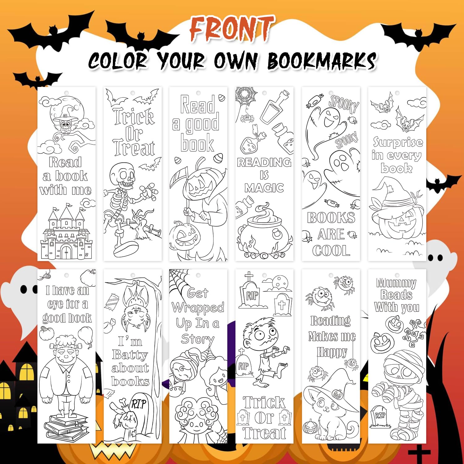 FINGOOO ハロウィン 塗り絵 48枚 しおり ブックマーク おしゃれ お絵描き 工作 DIY 手作り プレゼント (ぬりえ)