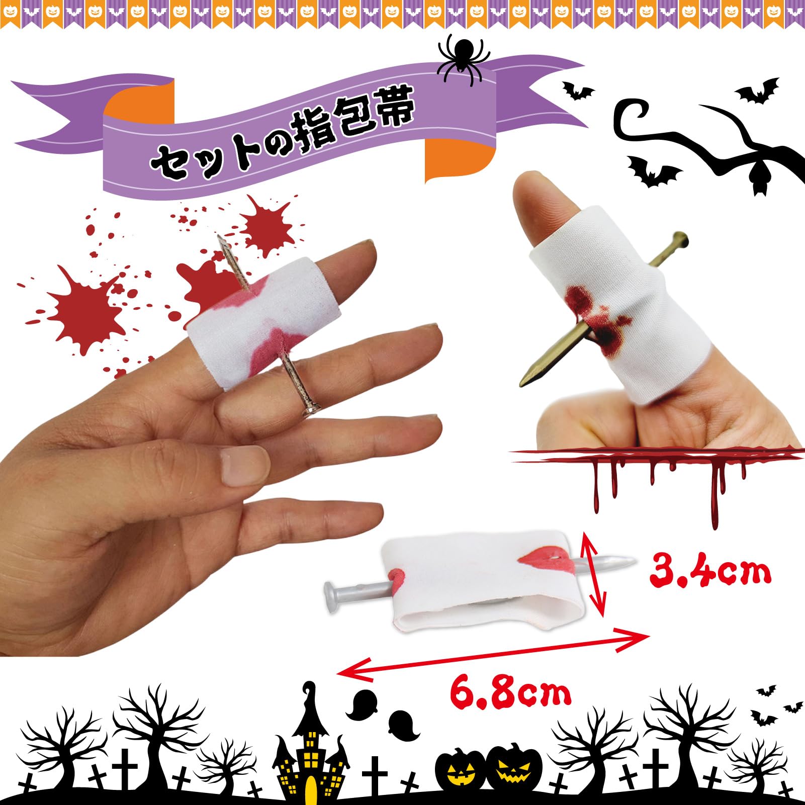 カチューシャと同じテーマの指に釘が刺さった包帯のアクセサリーがセットになっているので、一緒に使えばさらに統一感が生まれます。