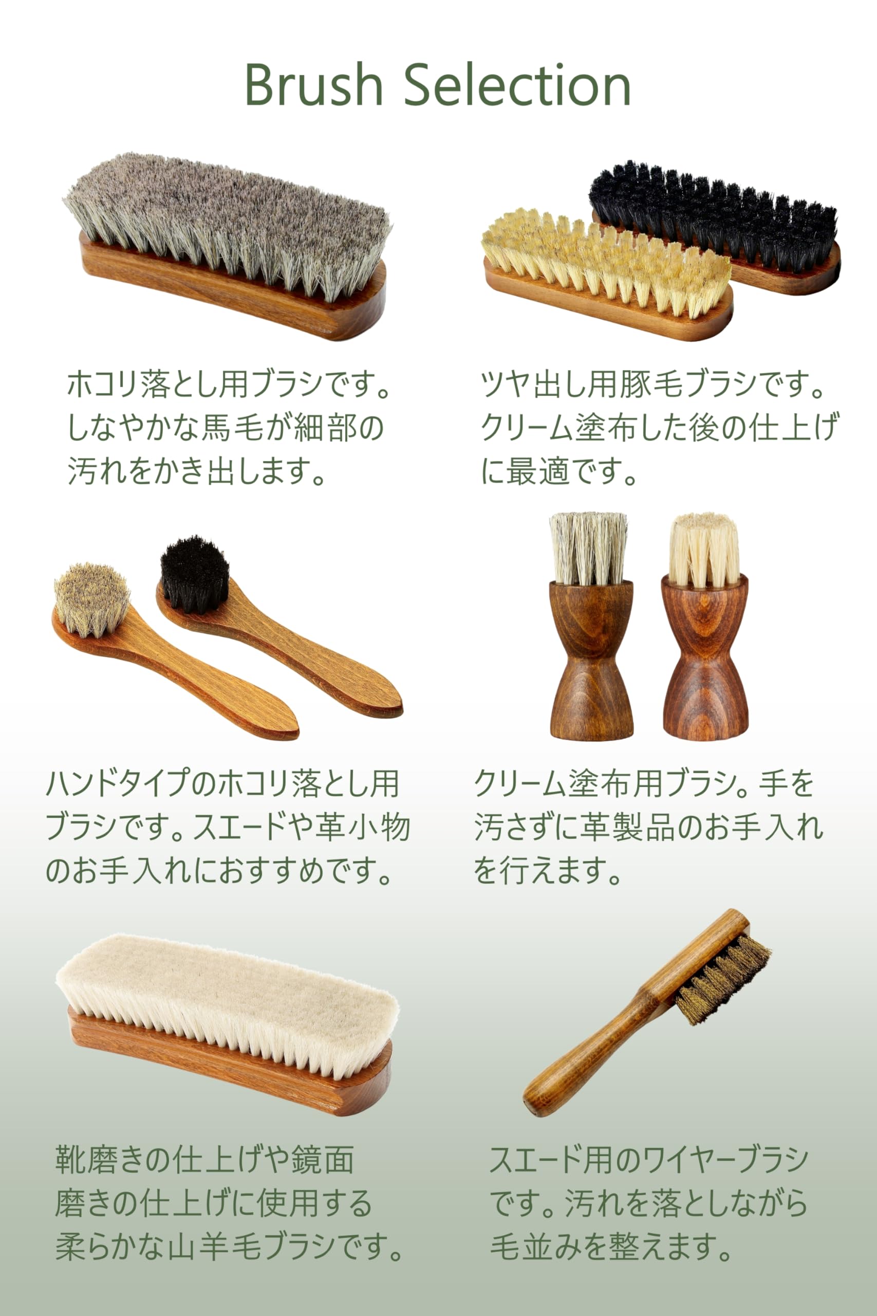シューズについた汚れを落とし、スエードやヌバックなどの毛並みをそろえる為の靴に優しい豚毛(黒毛)を使用した、ドイツ製靴ブラシです。コロンブス ジャーマンブラシ6が遂に解禁。