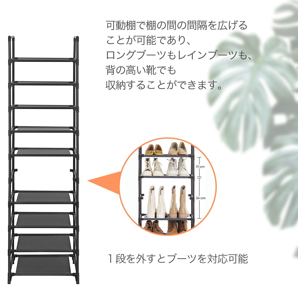 シューズラック 10段 18-20足 靴収納 下駄箱 省スペース玄関収納 おしゃれ 靴入れ 靴棚 オーガナイザー 鉄構造 不織布 廊下 クローゼット (A)
