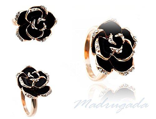 とても美しいブラックローズのリングがセットに!(内径1.8cm サイズ調節可能)