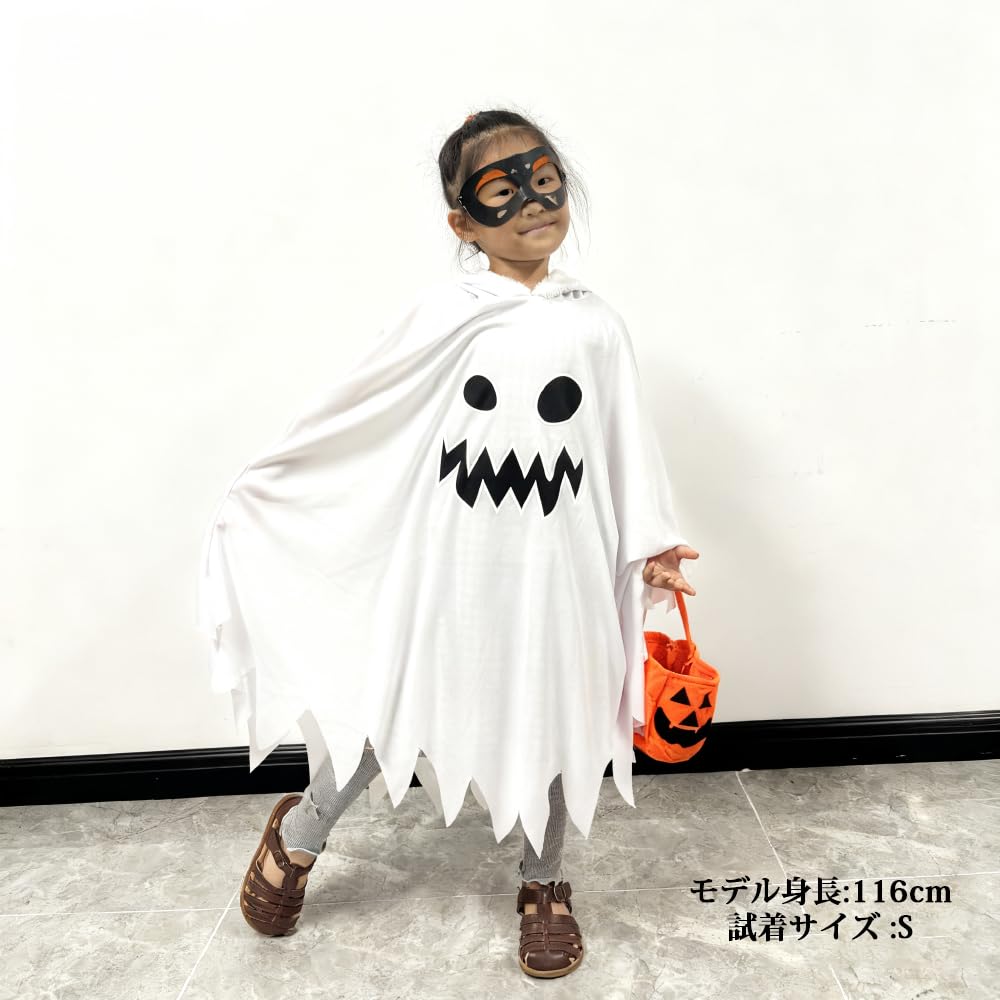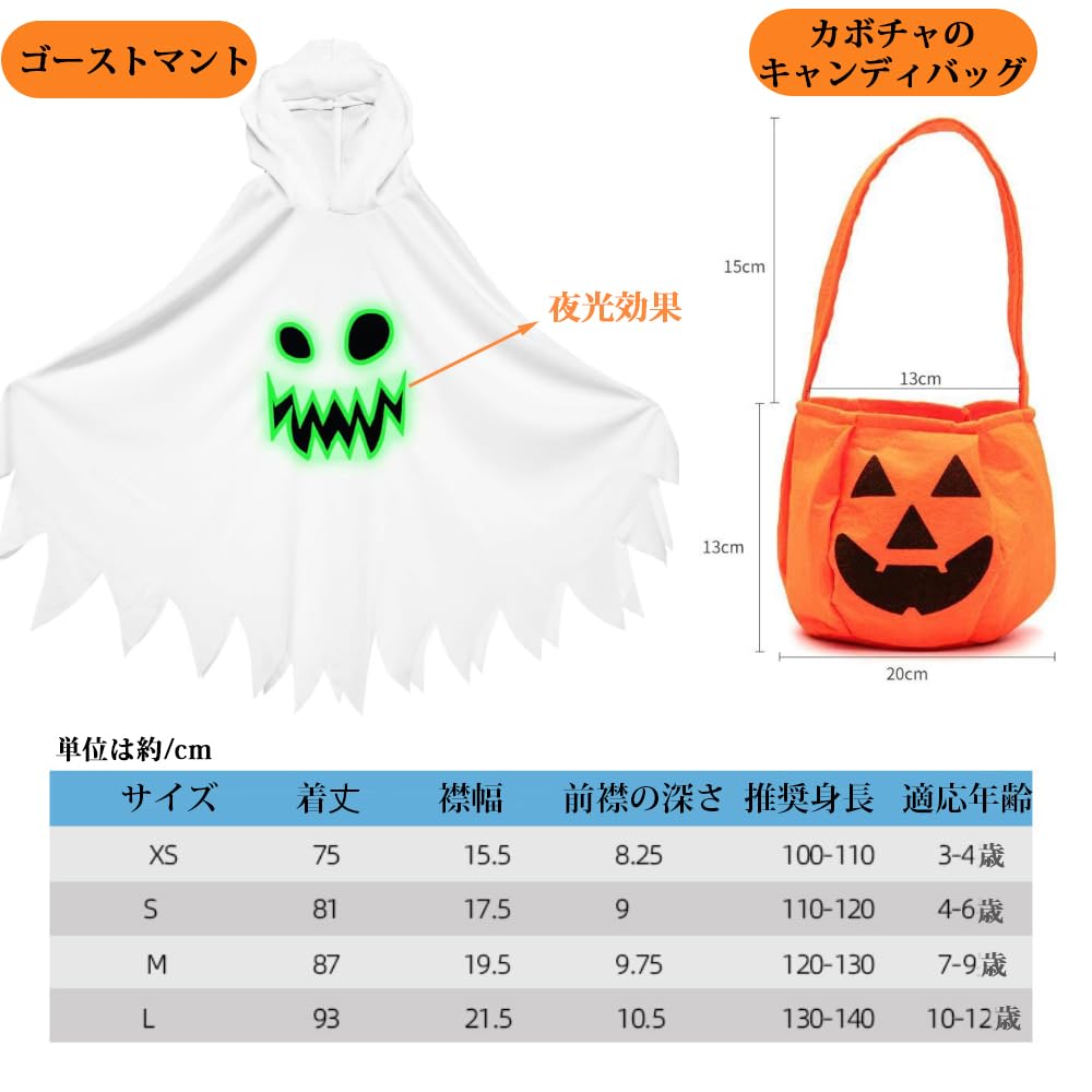 [GOORAIFU] ハロウィン コスプレ衣装 子供 幽霊 ゴースト マント おばけ ホラー 仮装 カボチャのバッグ付き コスチューム ギフト 文化祭 学園祭