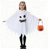 【2点セット】カボチャのキャンディバッグ付き、キッズ用コスプレ衣装の中でも人気な、お化けポンチョが登場。