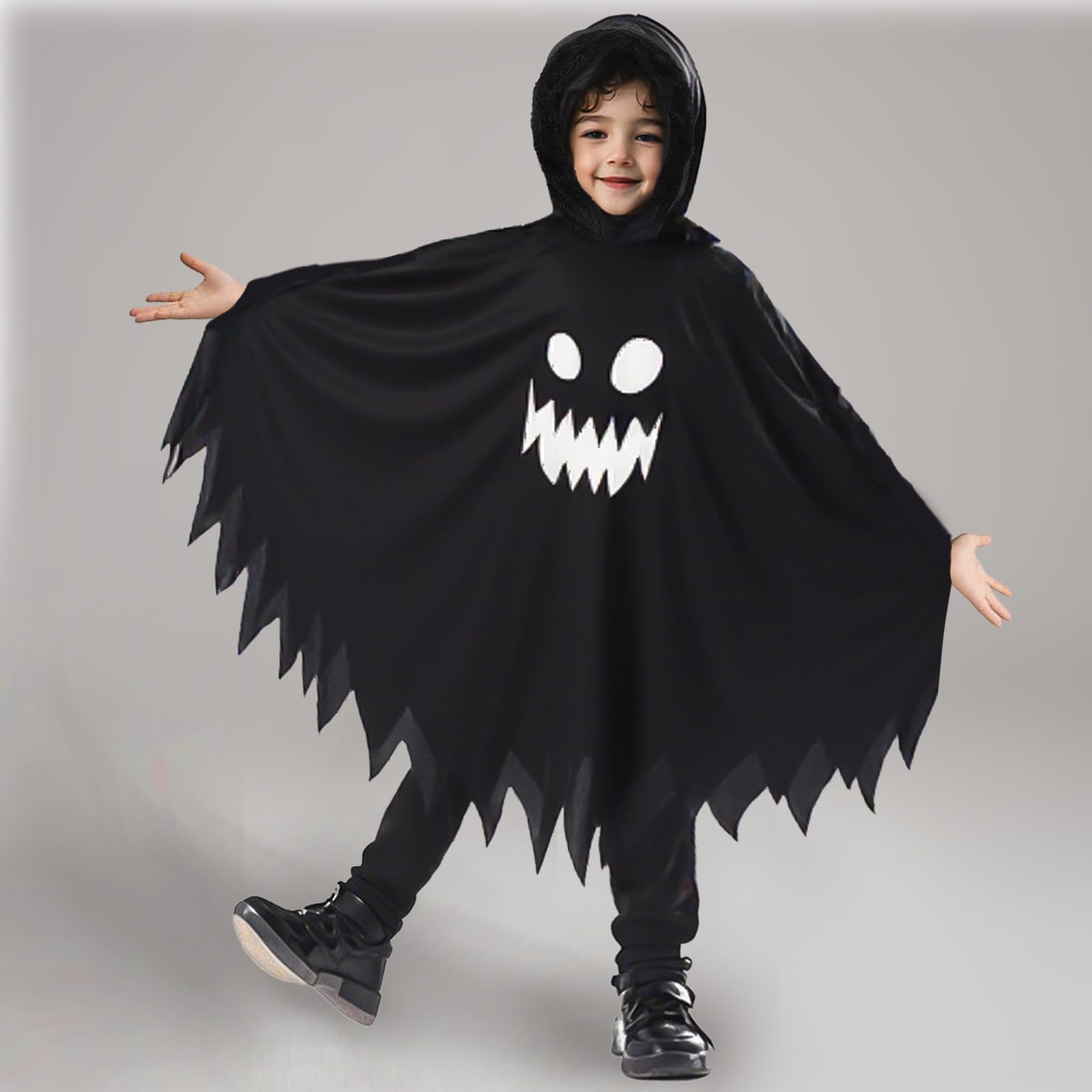 【2022最新】[HUQIDAO] ハロウィン マント 幽霊 おばけ コスプレ衣装 仮装 子供 小悪魔衣装 ホラー 変身 キッズコスチューム イベント 演出服 蛍光 夜光 男女兼用 写真 文化祭 学園祭(ブラック L) | libertyislan