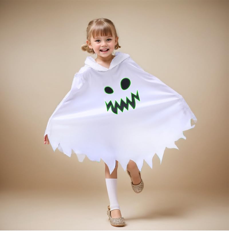 【大人気のマント衣装】ハロウィン仮装にぴったりキュートなオバケの顔デザインなポンチョです。子供たちがハロウィンの楽しさを最大限に体験できるようデザインされています。お化けポンチョの仮装は、ハロウィンパーティーや学校行事での注目度は間違いなしです。コスプレに欠かせない帽子がセットになっています。ハロウィンの雰囲気を十分に味わう!