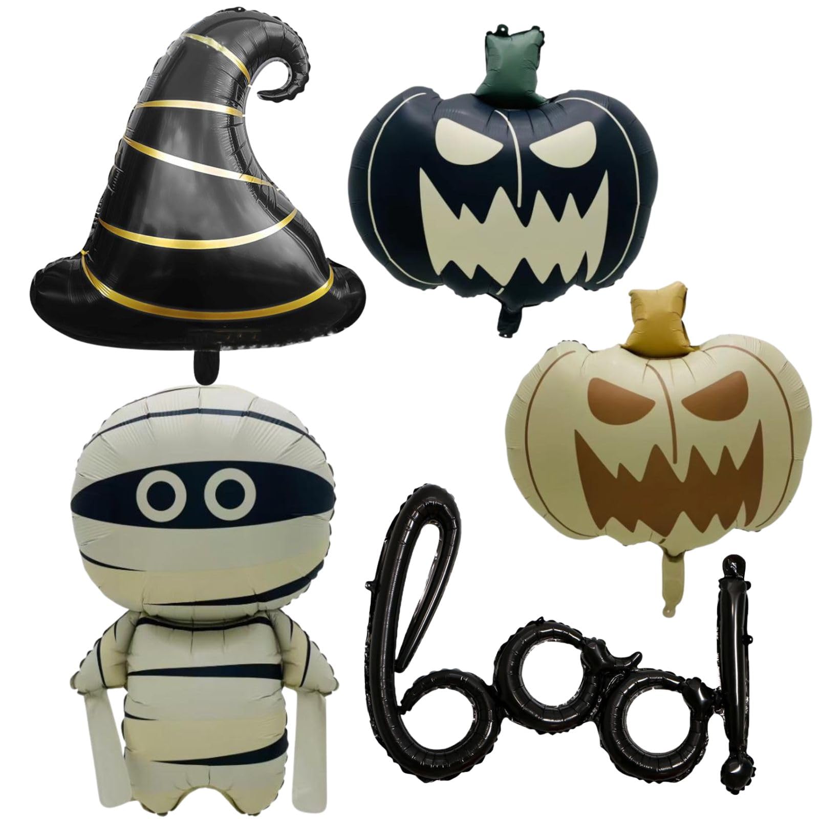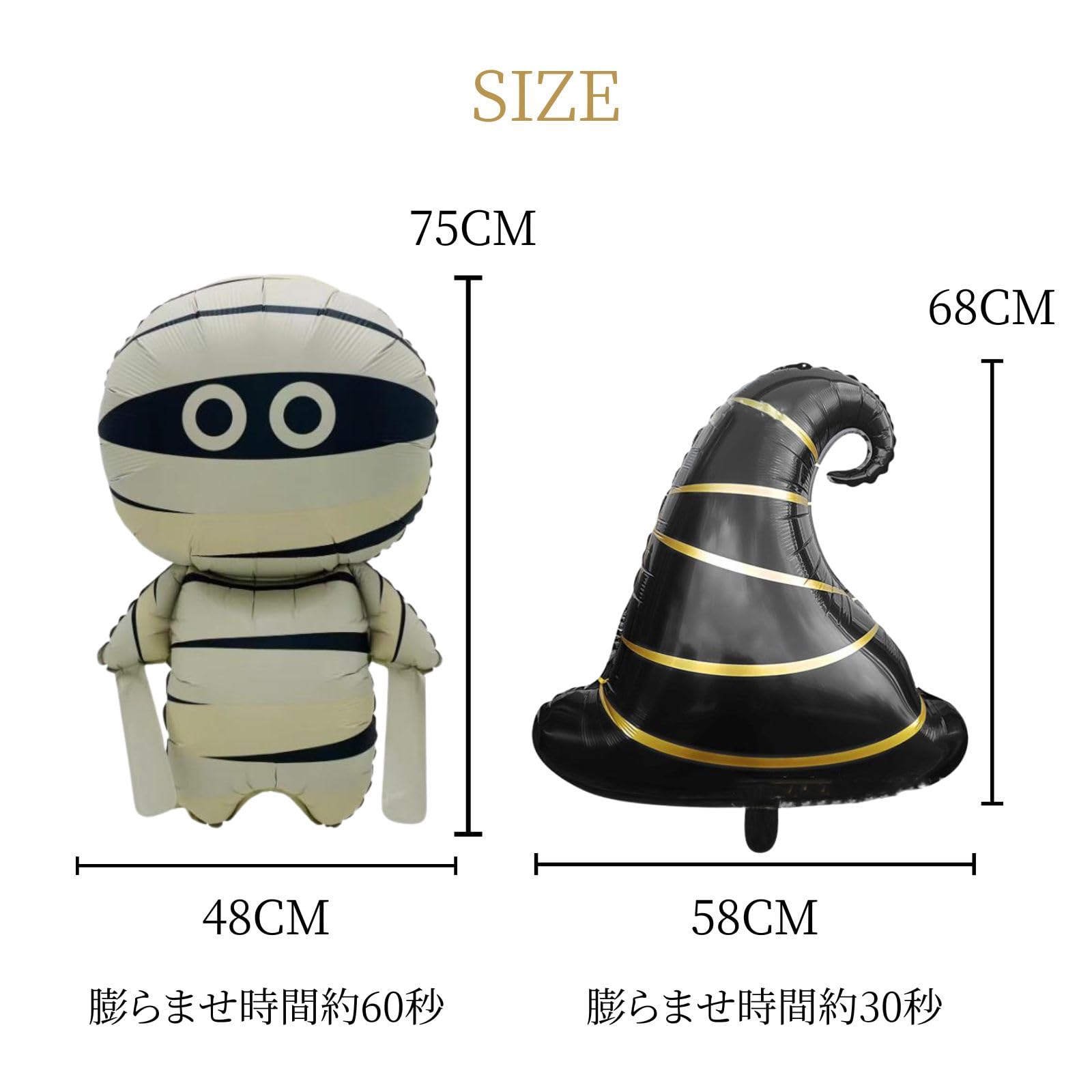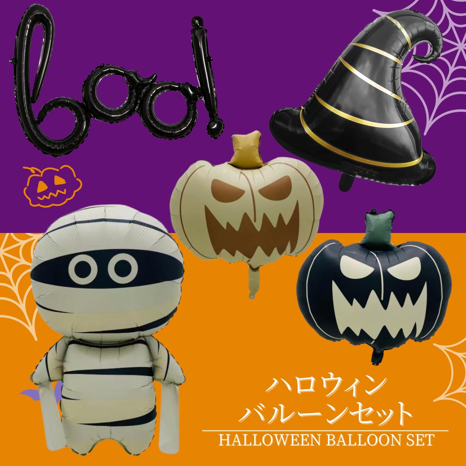 【商品仕様】セット内容①ミイラバルーンx1個(膨らます前約48x75cm、膨らませ時間約1分)、②ブラックかぼちゃバルーンx1個(膨らます前約63x76cm、膨らませ時間約1分)、③ベージュかぼちゃバルーンx1個(膨らます前約63x76cm、膨らませ時間約1分)、④Booバルーンx1個(膨らます前約51x73cm、膨らませ時間約30秒)、⑤帽子バルーンx1個(膨らます前約58x68cm、膨らませ時間約30秒)、イメージ:画像の通り、【Lumierechatセレクト商品、ショップタグ有】第5853154号 Lumierechat"