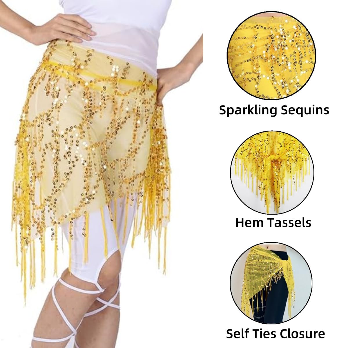 [Getrays] レディース スパンコール タッセル スカート、グリッター フリンジ ベリーダンス ウエスト ヒップ スカーフ、ハロウィン レイブ パーティー コスチューム用レースアップ タンゴ ダンス スカート