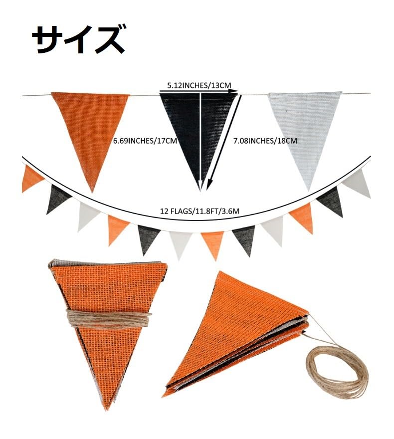 【人気商品】HFJEM 三角旗 2本セット ガーランド リネン 亜麻 約3.6M長 麻ロープ お盆 キャンプフラッグ バナー アウトドア旗 パーティー飾り 誕生日 子供部屋飾り 壁飾り 結婚式 ウエディング 記念日 幼稚園 運動会 体育祭 文化祭 可愛い DIY 店舗飾り (ハロウィン-2pcs) | libertyislan