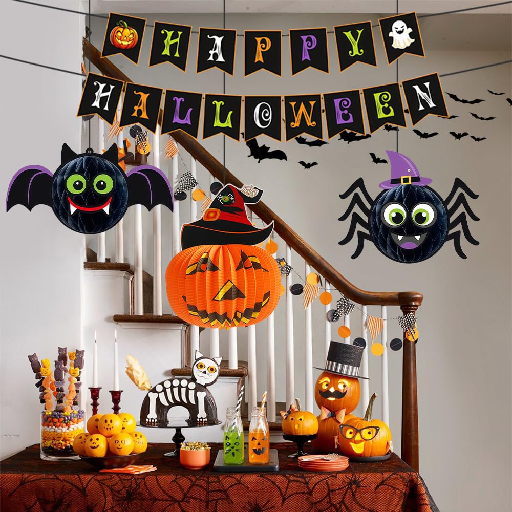 ハロウィン 飾り 提灯 19点セット Halloween 立体 紙 吊り下げ ハロウィングッズ パーティー 飾り付け カボチャ 幽霊 ゴースト コウモリ 蜘蛛 ガーランド 壁掛け オーナメント お化け屋敷 パーテイー小物 バナー店舗 装飾 (A タイプ/19点セット)