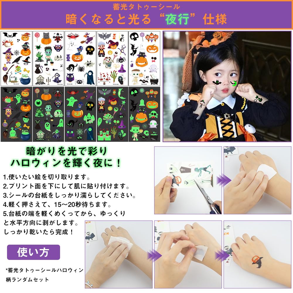 【かわいいハロウィン・幻想的なハロウィンパーティー】ハロウィンガーランドとモンスターキャラクター要素が、おしゃれで可愛いハロウィンカラーデザインでパーティー氣氛を完璧に盛り上げます!コウモリステッカーが登場!窓ガラス・鏡・家具に貼るだけで、ランダム配置により蝙蝠の群れが飛来するような立体効果を発揮します。独自開発の夜光タトゥーシールは昼間2時間光を吸収するだけで、暗闇に幽玄なグリーン蛍光を放ち、幻想的な空間を創り出します。三重吸光技術(自然光/照明/紫外線)により、テーマパークやナイトイベント、密室パーティーなど低照度空間を完璧に演出!ハロウィンはもちろん、パーティー・新年会・忘年会・仮装・コスプレなど、多様な祭り場景に大活躍!