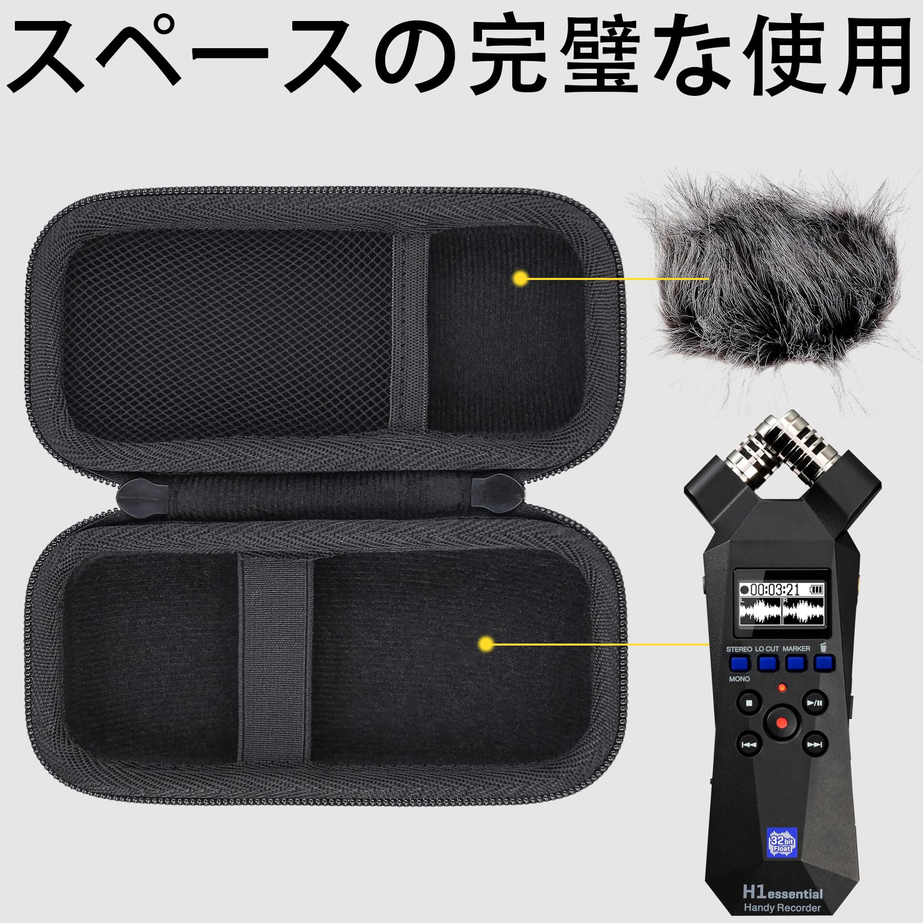 【合理的な保管】Aenllosi 収納ケースは、ZOOM h1 essential ハンディレコーダー ズームのために特別に設計されており、ZOOM h1essential ハンディーレコーダーとズーム ヘアリーウィンドスクリーンーをまとめて収納できます。 ケースサイズ:15.5x8.2x5.5cm。