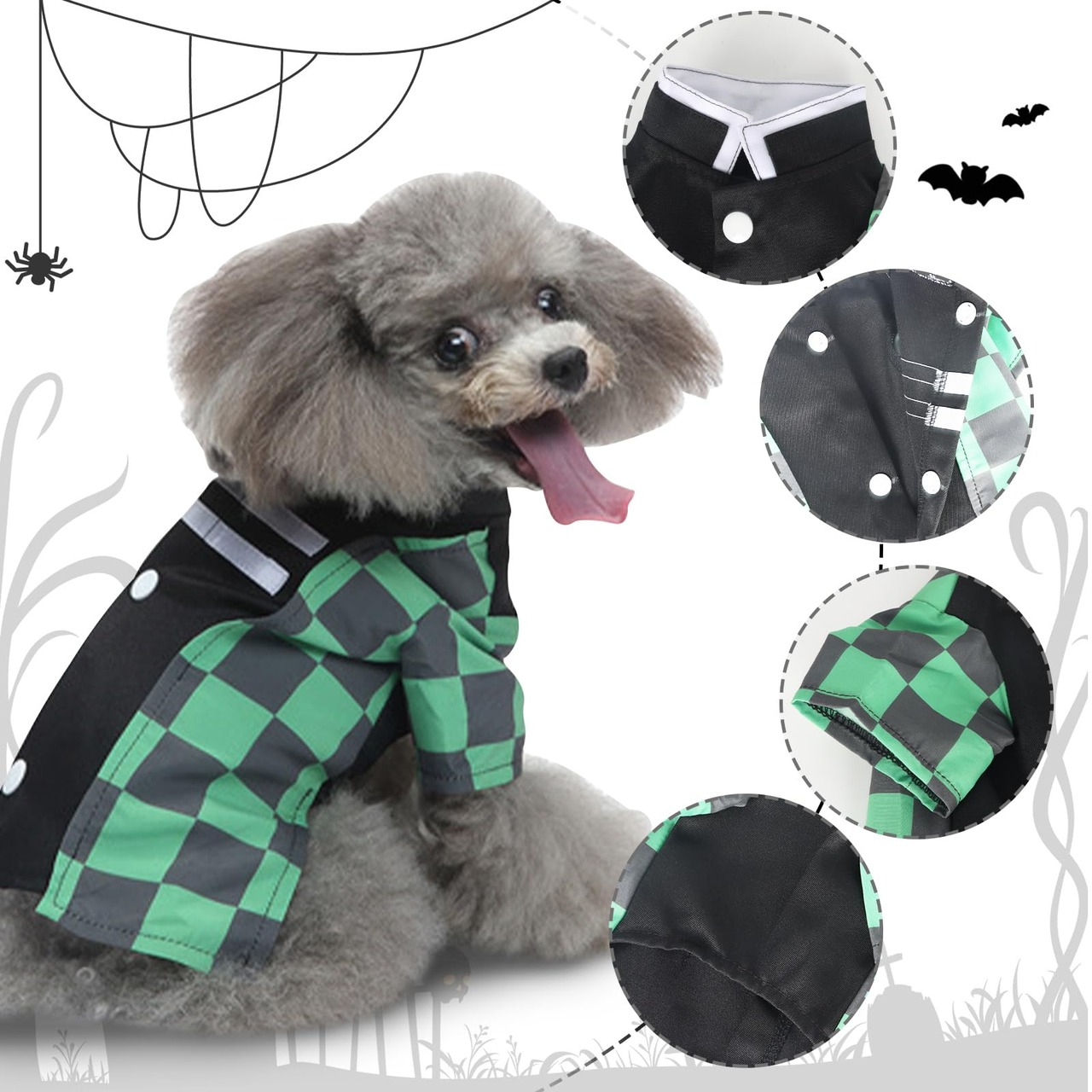 AmzBarley 犬服 コスプレ 衣装 羽織 市松編 アニメ風 猫服 ハロウィン 仮装 小型犬 中型犬 犬猫兼用 犬の服 コスチューム 猫 洋服 着物 日常着 誕生日 写真 記念撮影 お出かけ パーティー イベント